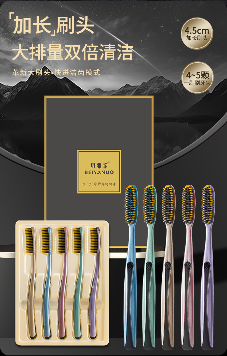 【刷牙也可以很惬意】创新设计大头牙刷 加长刷头 弧面刷毛贴合牙齿 柔软刷毛 从“齿”更干净 5支/盒