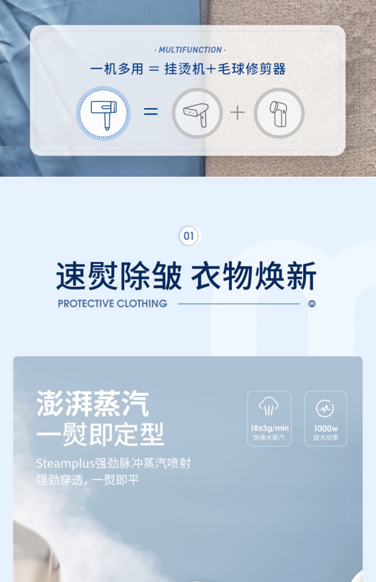 【家用手持小型熨烫机熨斗】 衣摩飞 挂烫机MR2031 物护理熨烫除毛器二合一