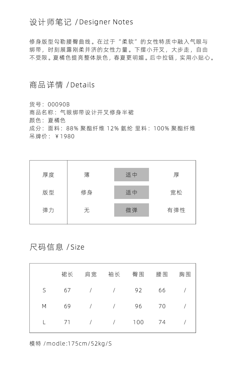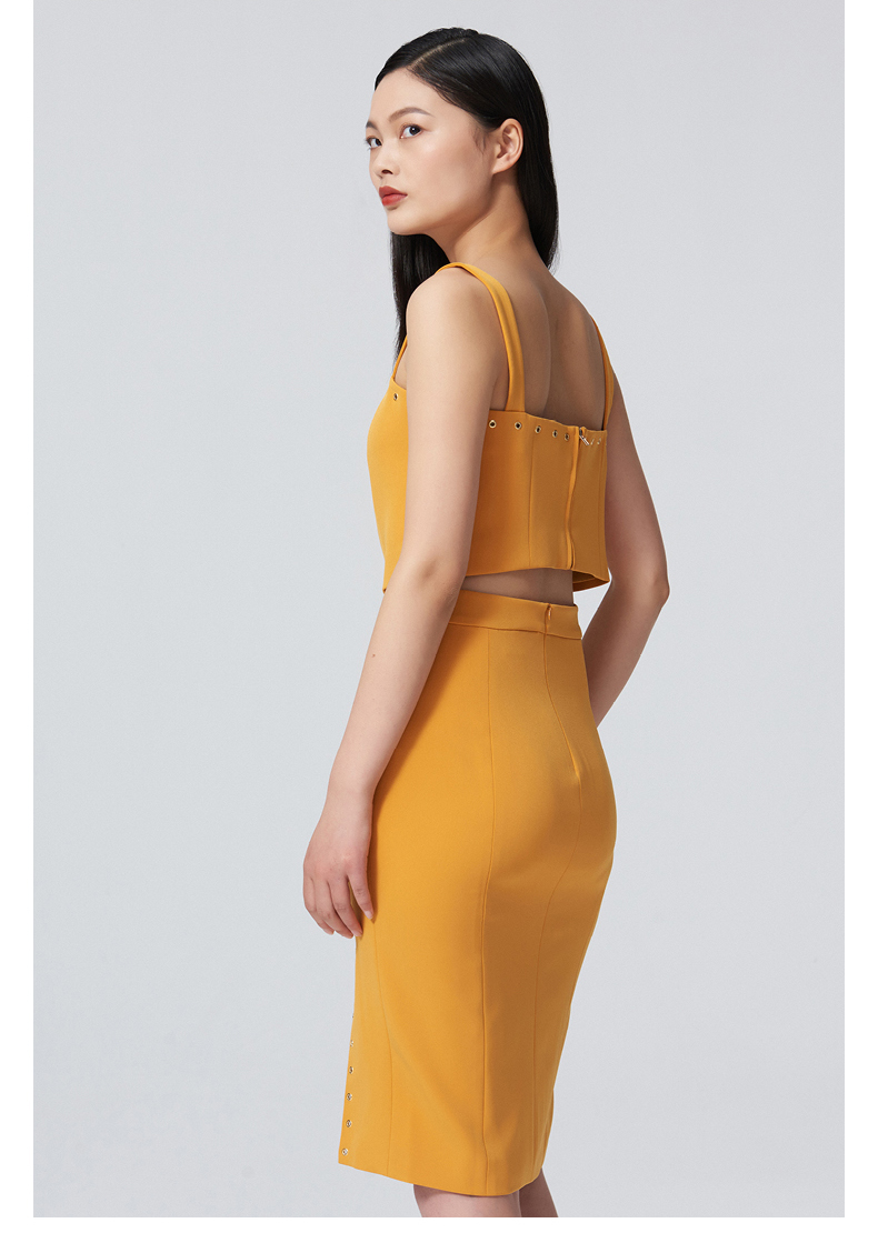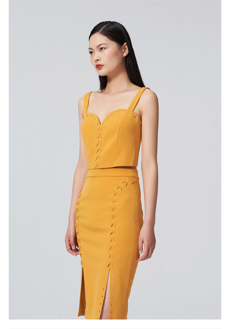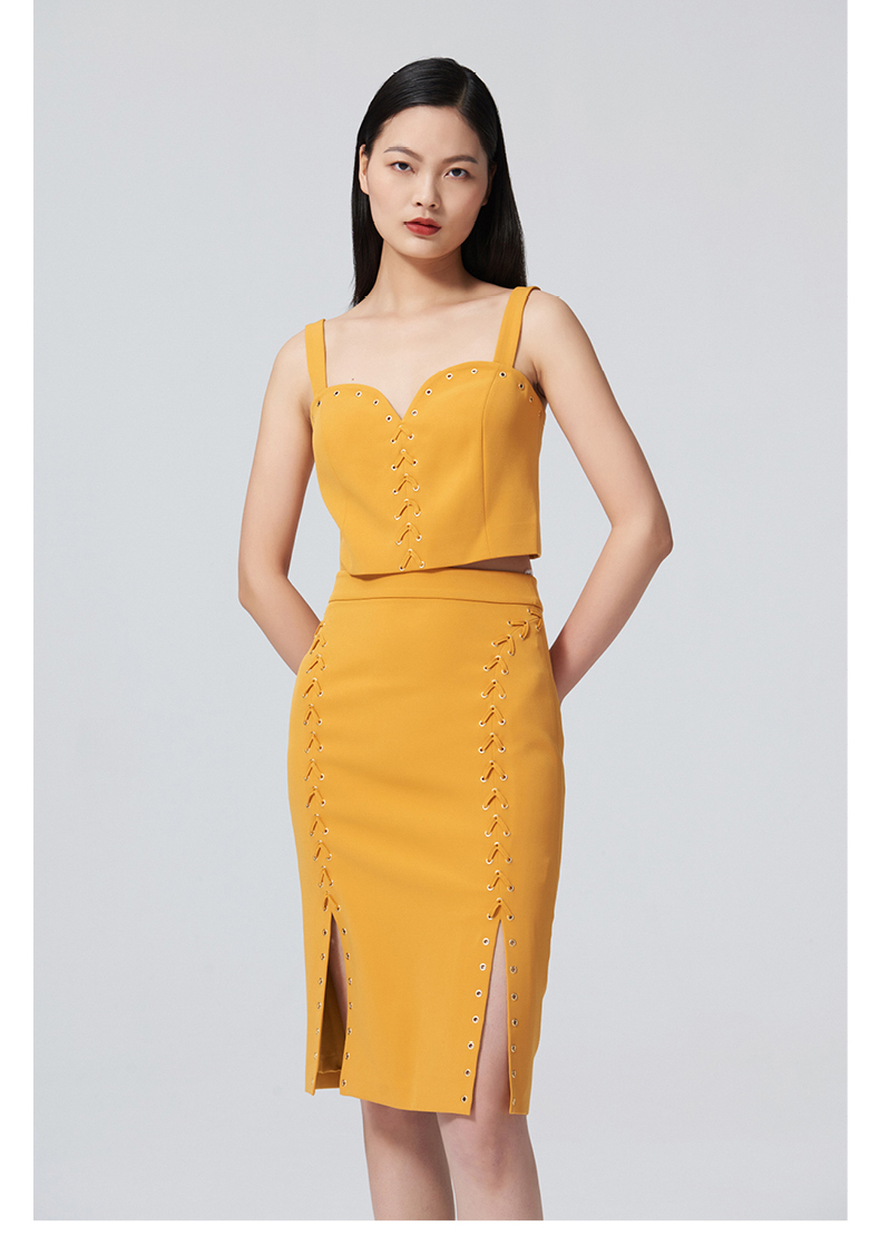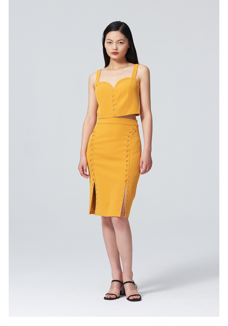 【桃乐茜】气眼绑带设计开叉夏橘修身半裙/00090B