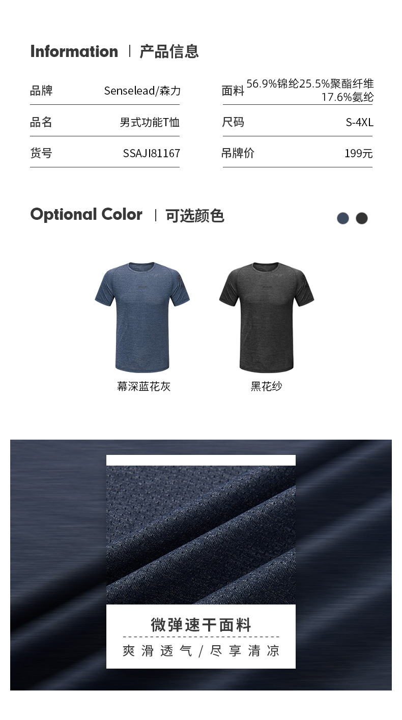 Senselead森力/男式功能T恤 SSAJI81167