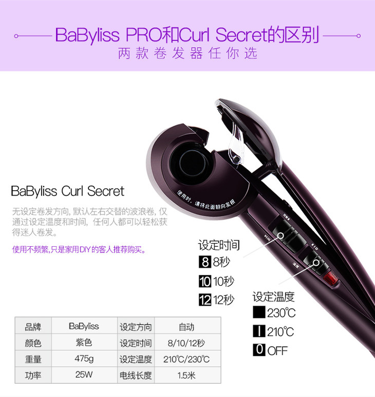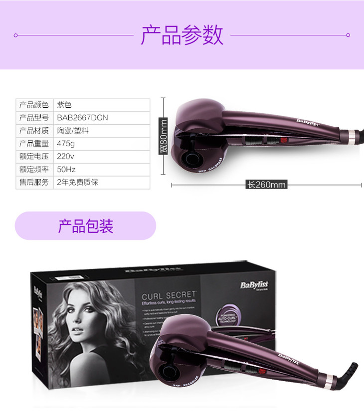巴比丽丝(BaByliss)卷发棒 自动卷发器-标准版温控卷发器 2667DCN
