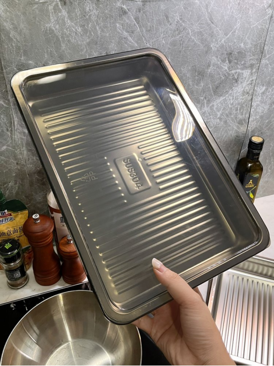 🔸加厚板材一体压铸成型,双面电解工艺 精工制作抛光,四周弧度设计,不会刮手 真正可以与食品接触而不产生身体危害 的不锈钢材,24小时抑制细菌滋生 能用、能装、能摆、还能节省空间