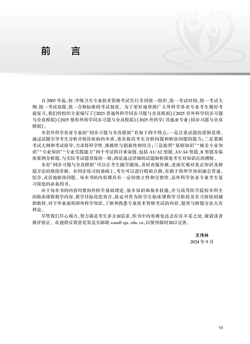 2025普通外科学同步习题与全真模拟 王伟林主编 全国卫生专业技术资格考试习题集丛书 适用专业普通外科学(中级) 9787117370110