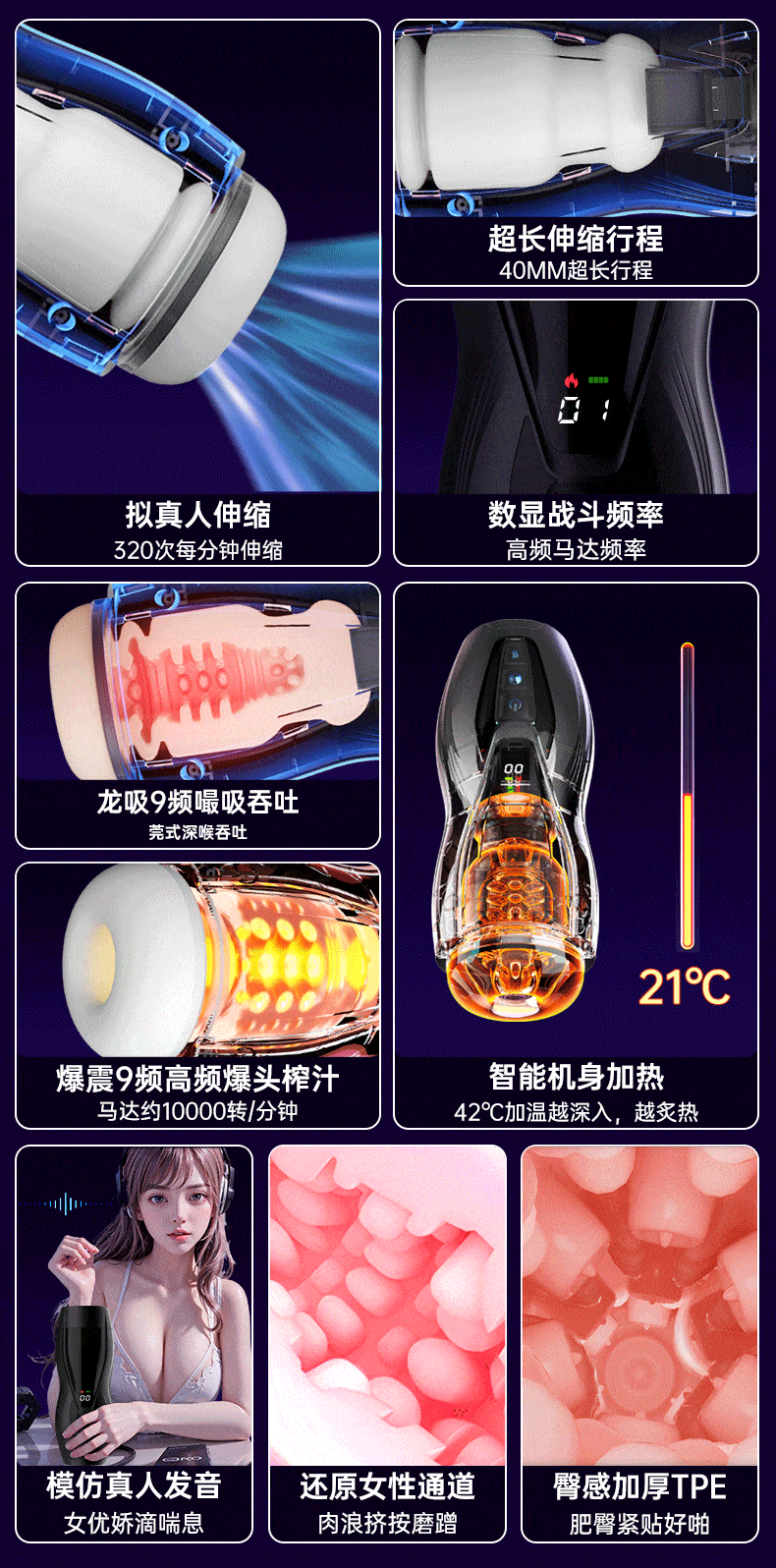 Exclusive Angel 梦幻全自动飞机杯男用品伸缩电动加温降敏训练男性吮吸情趣神器