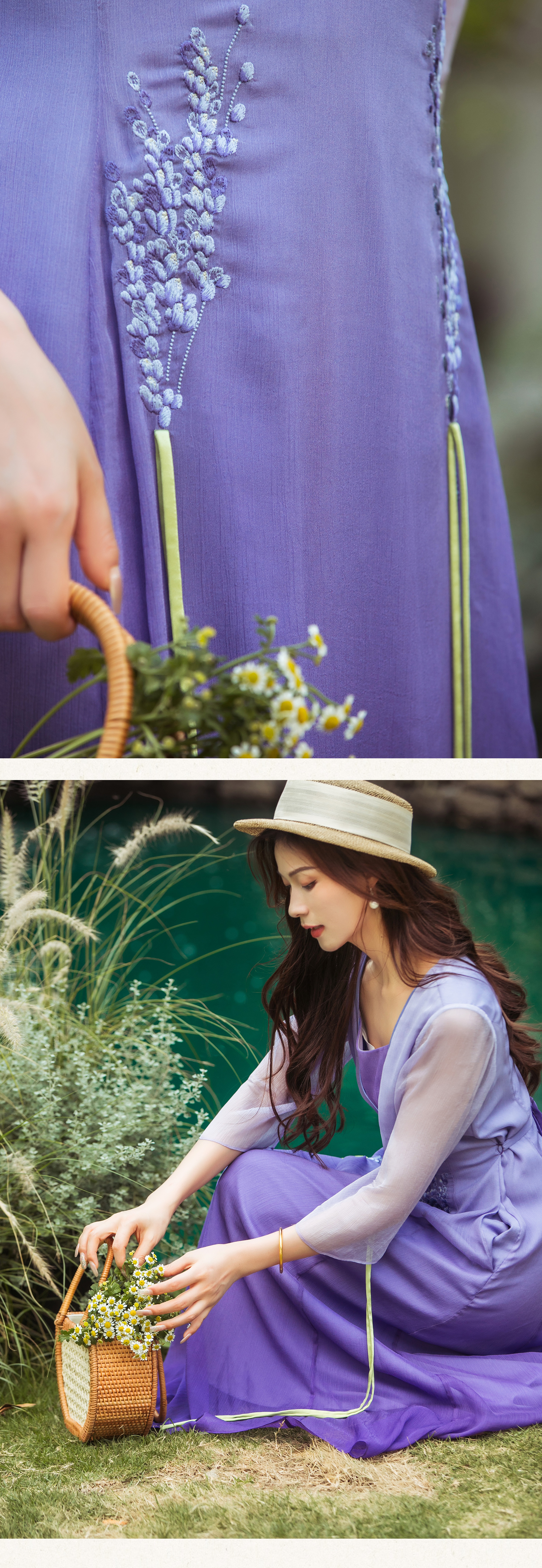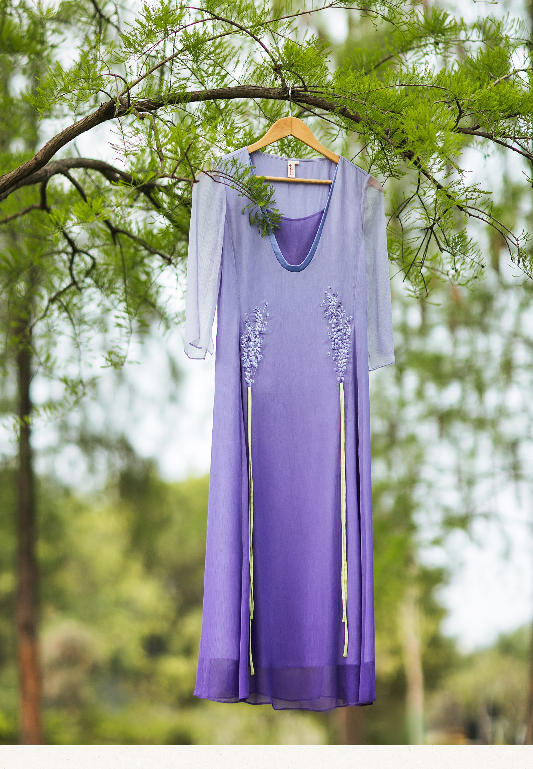 【林栖设计小店】(少量现货)【林栖推荐】2025年春夏新品紫色渐变连衣裙绣花长裙女N1952431