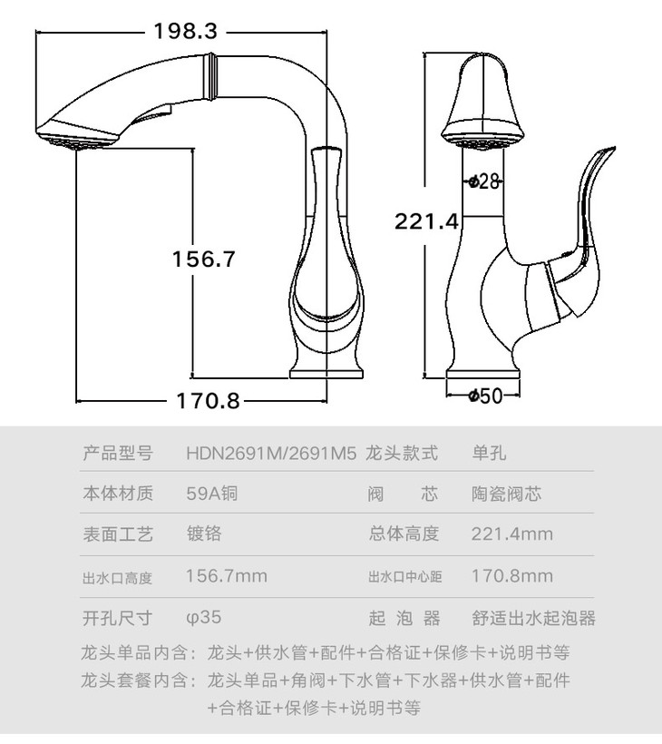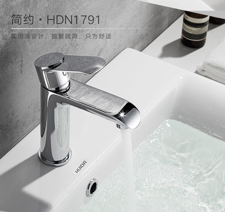 惠达卫浴全59A铜卫生间浴室柜洗手洗脸面盆冷热水单孔水龙头HDN2691M单孔抽拉面盆龙头-WX