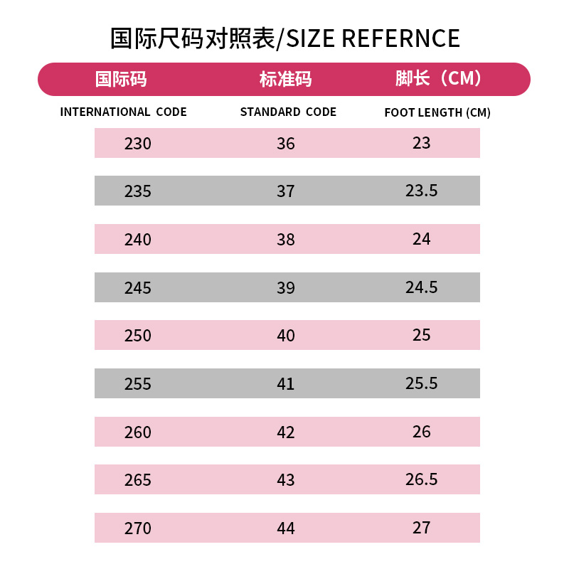 温馨提示:本款鞋子包裹性比较强,建议大家拍大一码