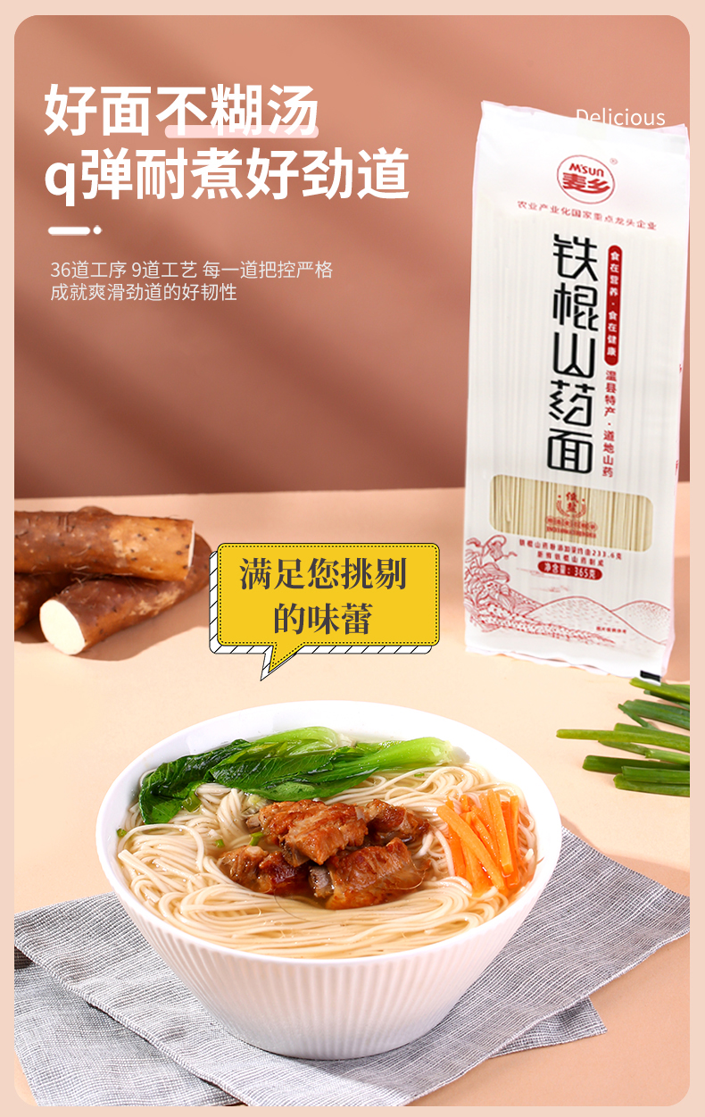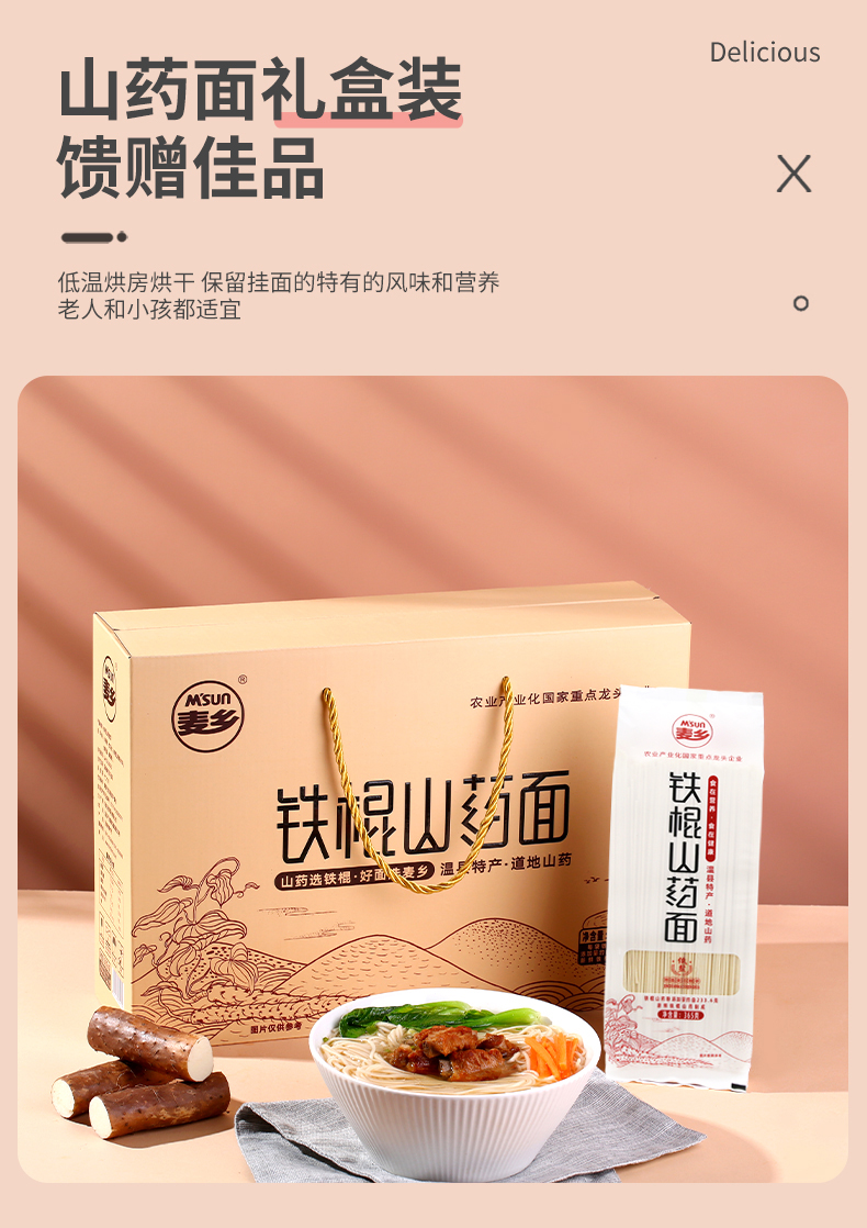 麦乡铁棍山药挂面365g*6袋礼盒装速食早餐汤面面条爽滑家用包邮