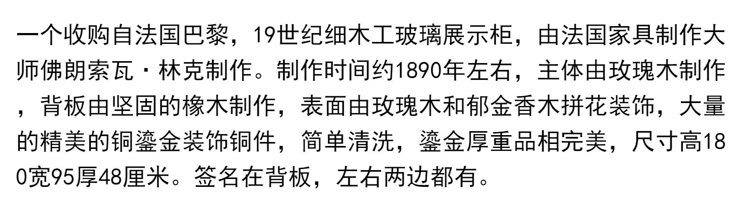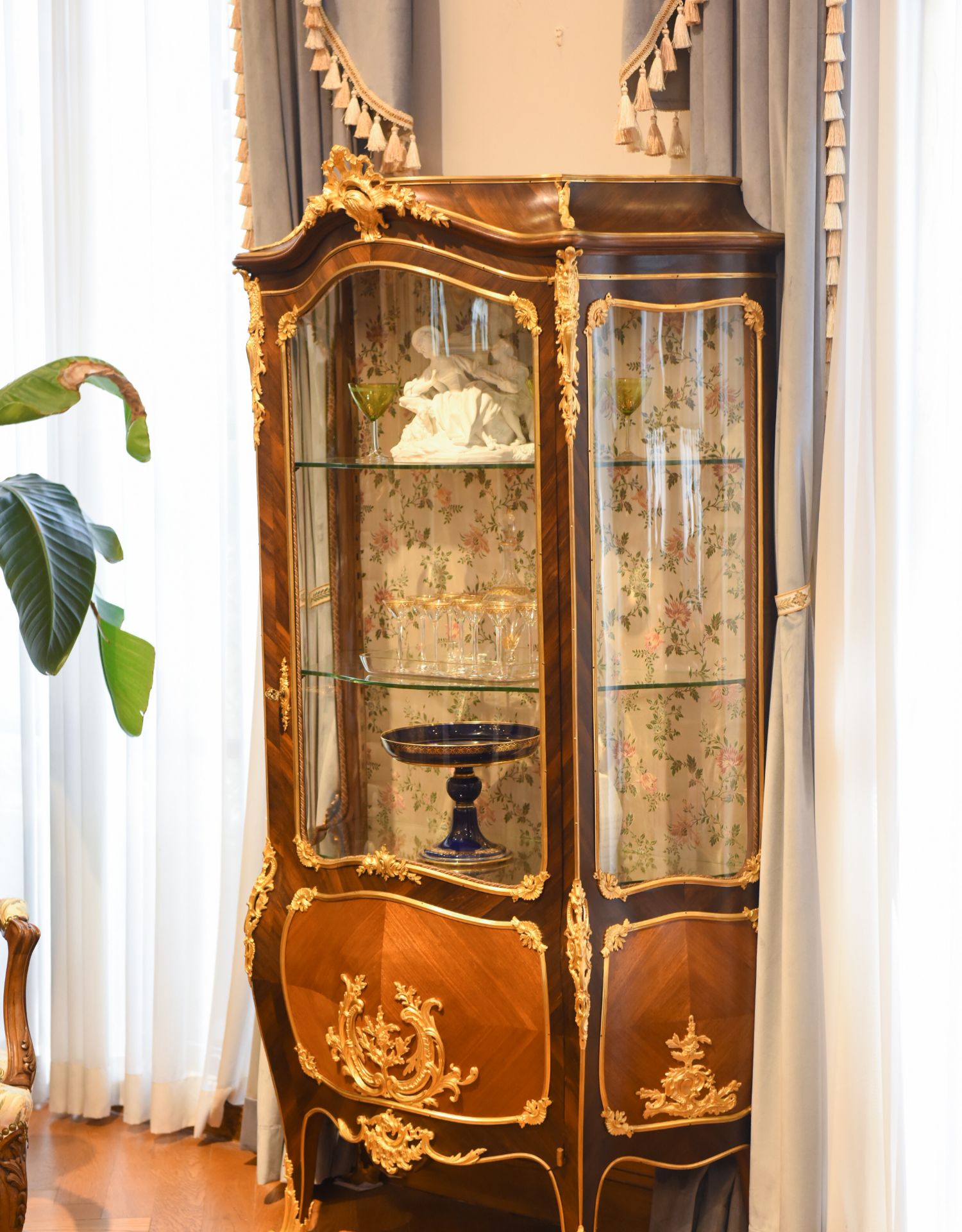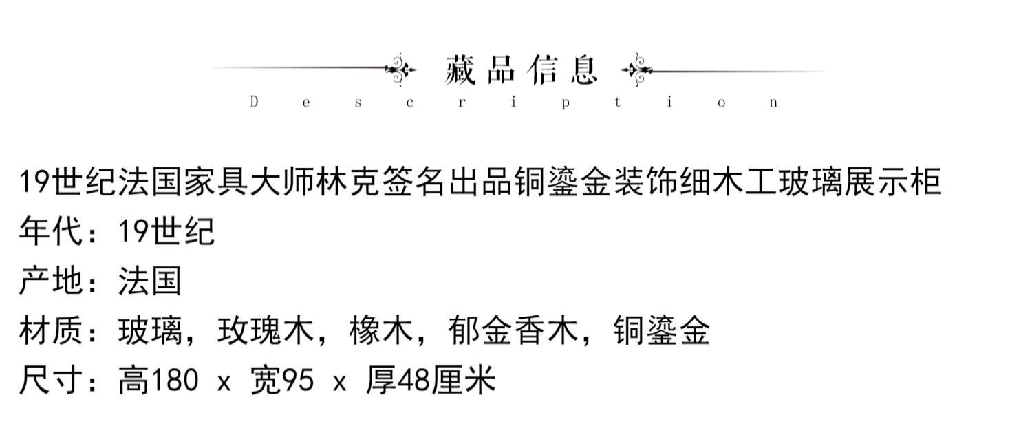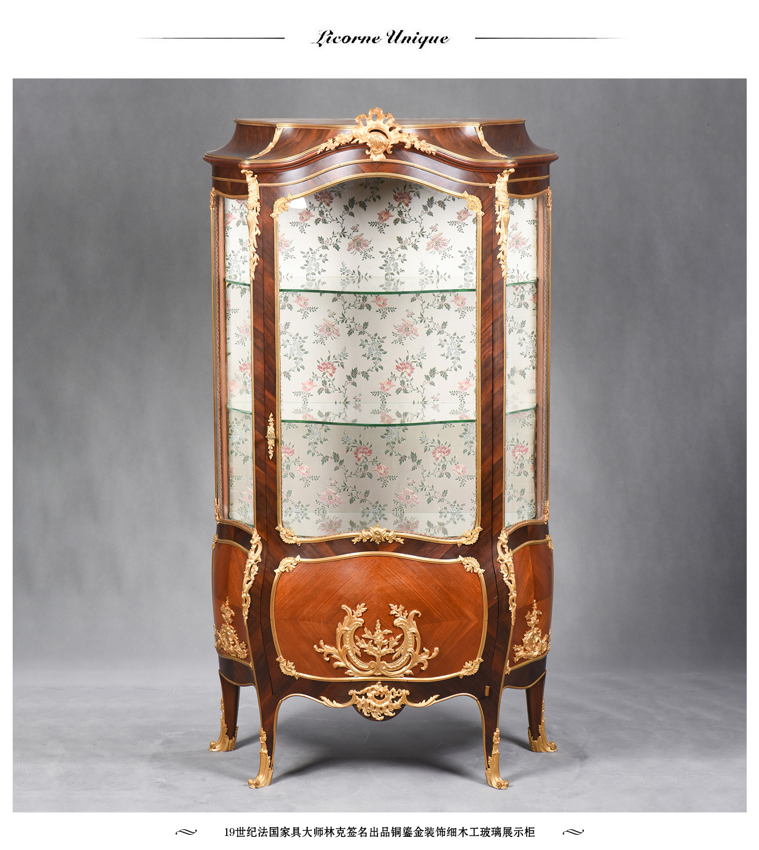 国内现货独角鹿西洋古董家具大师林克铜鎏金装饰细木工玻璃展示柜