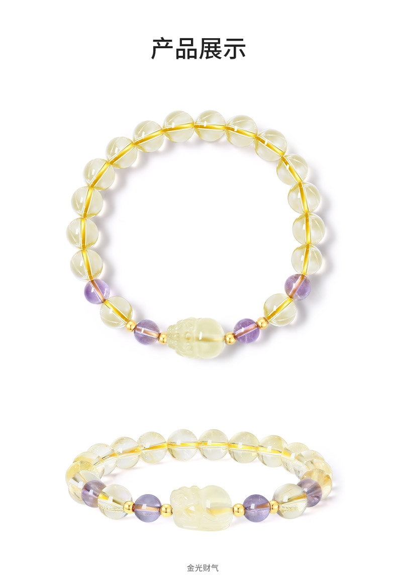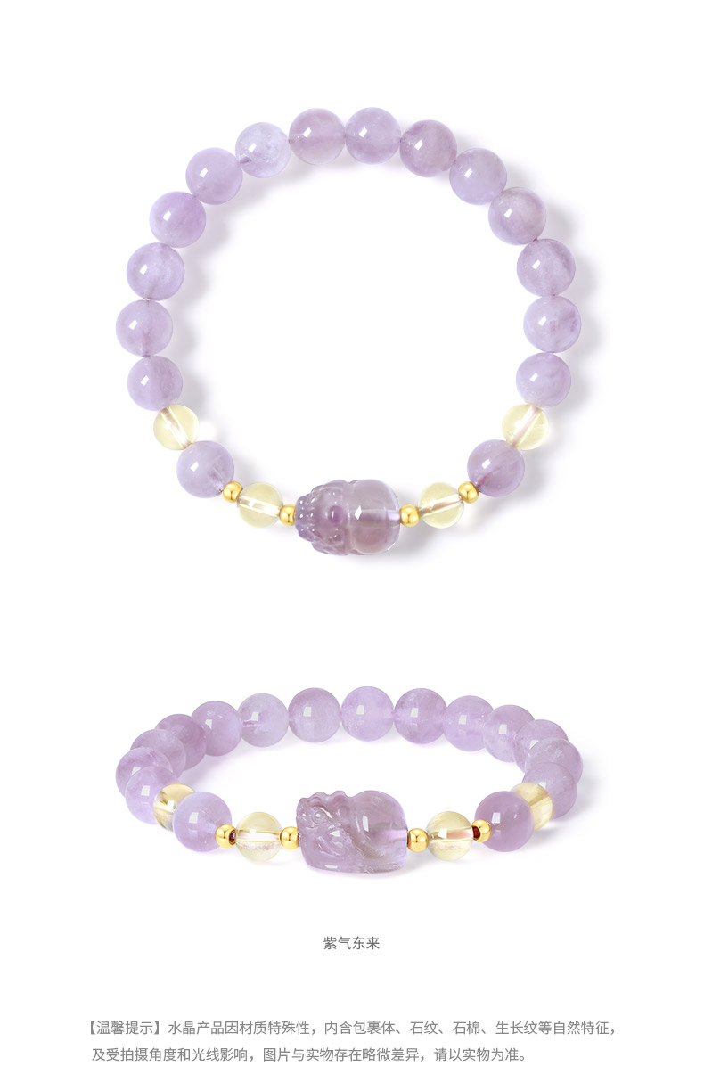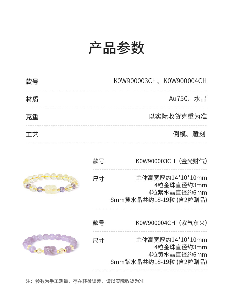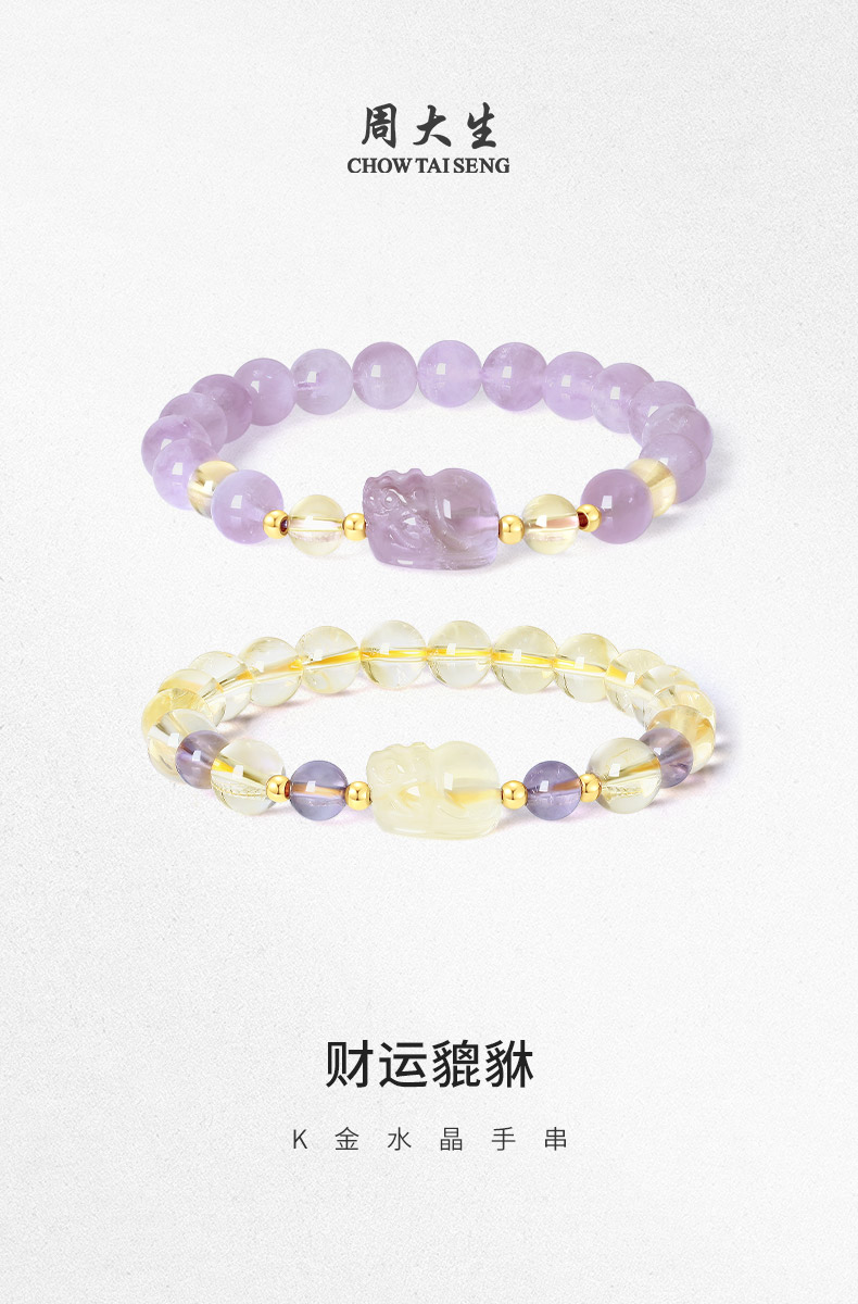 【特价秒杀】周大生18K黄金镶玉石紫水晶黄水晶貔貅手串生日礼物送女友