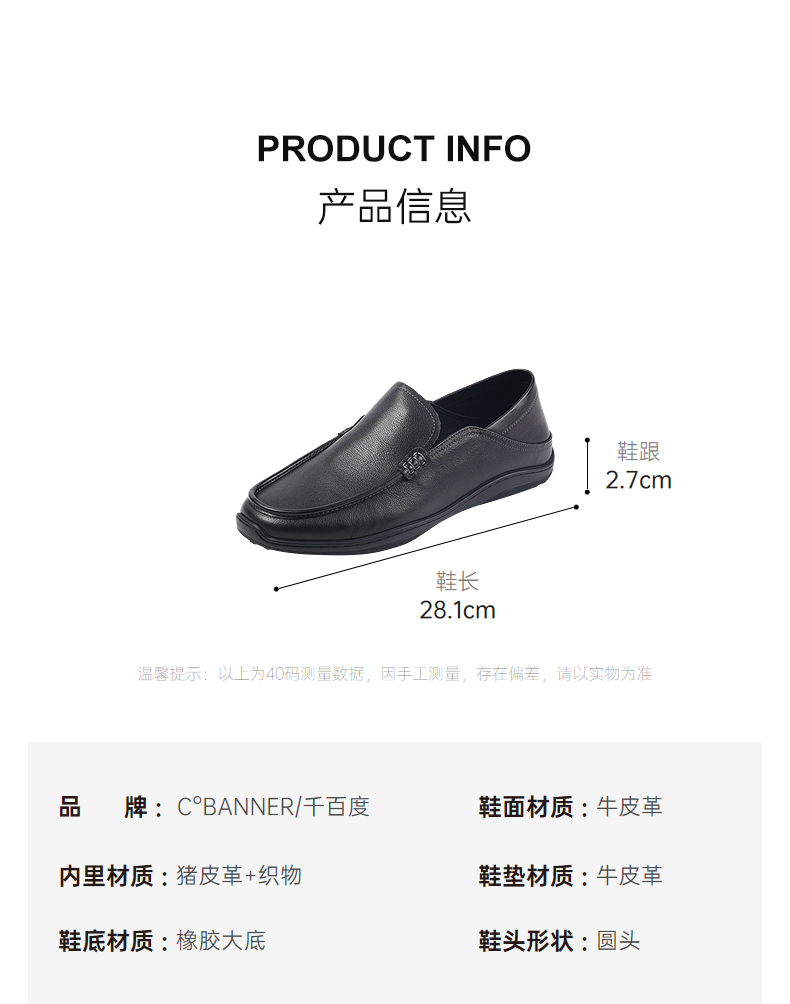 4楼千百度2025秋季舒适低跟强韧橡胶大底得体乐福鞋男鞋A25407220