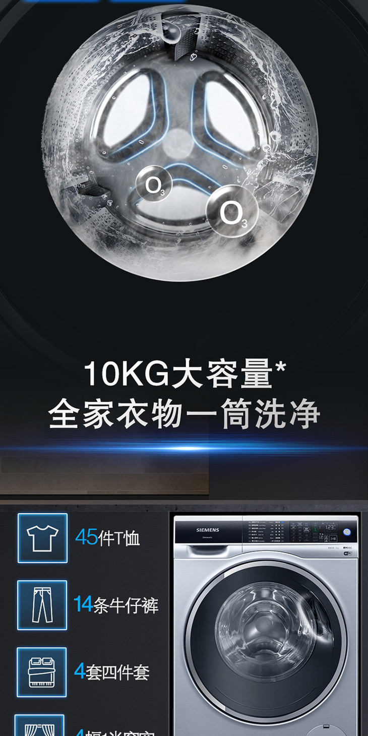 西门子(SIEMENS)(251910) 10公斤滚筒 除菌除螨除异味 超氧空气洗 家居互联 洗衣机 XQG100-WG54C3B8HW
