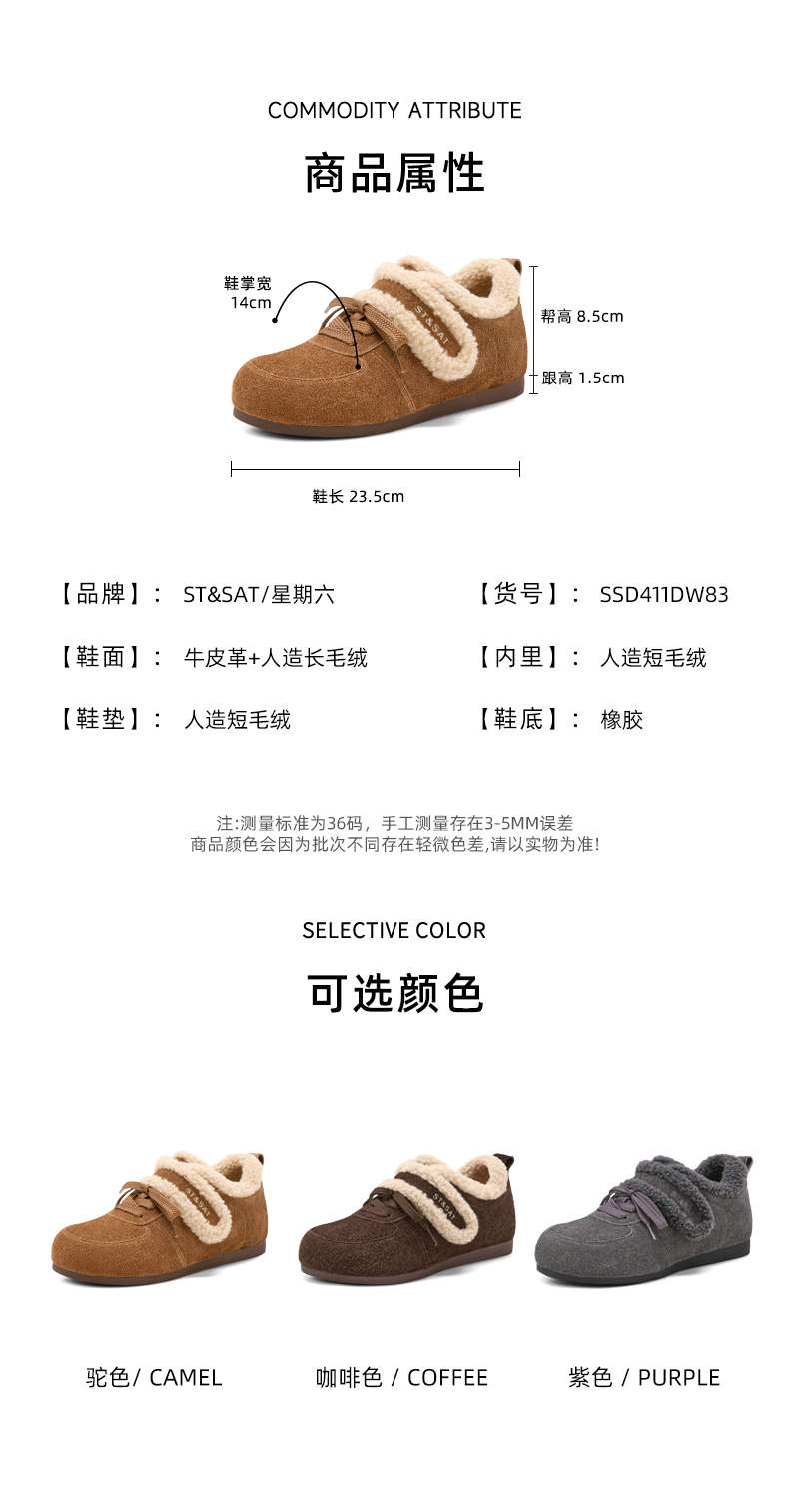 星期六保暖泰迪毛边舒适德训鞋SSD411DW83
