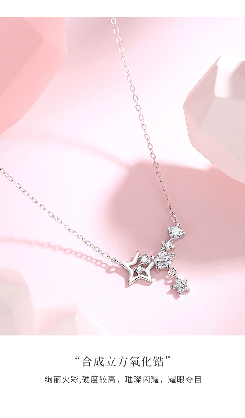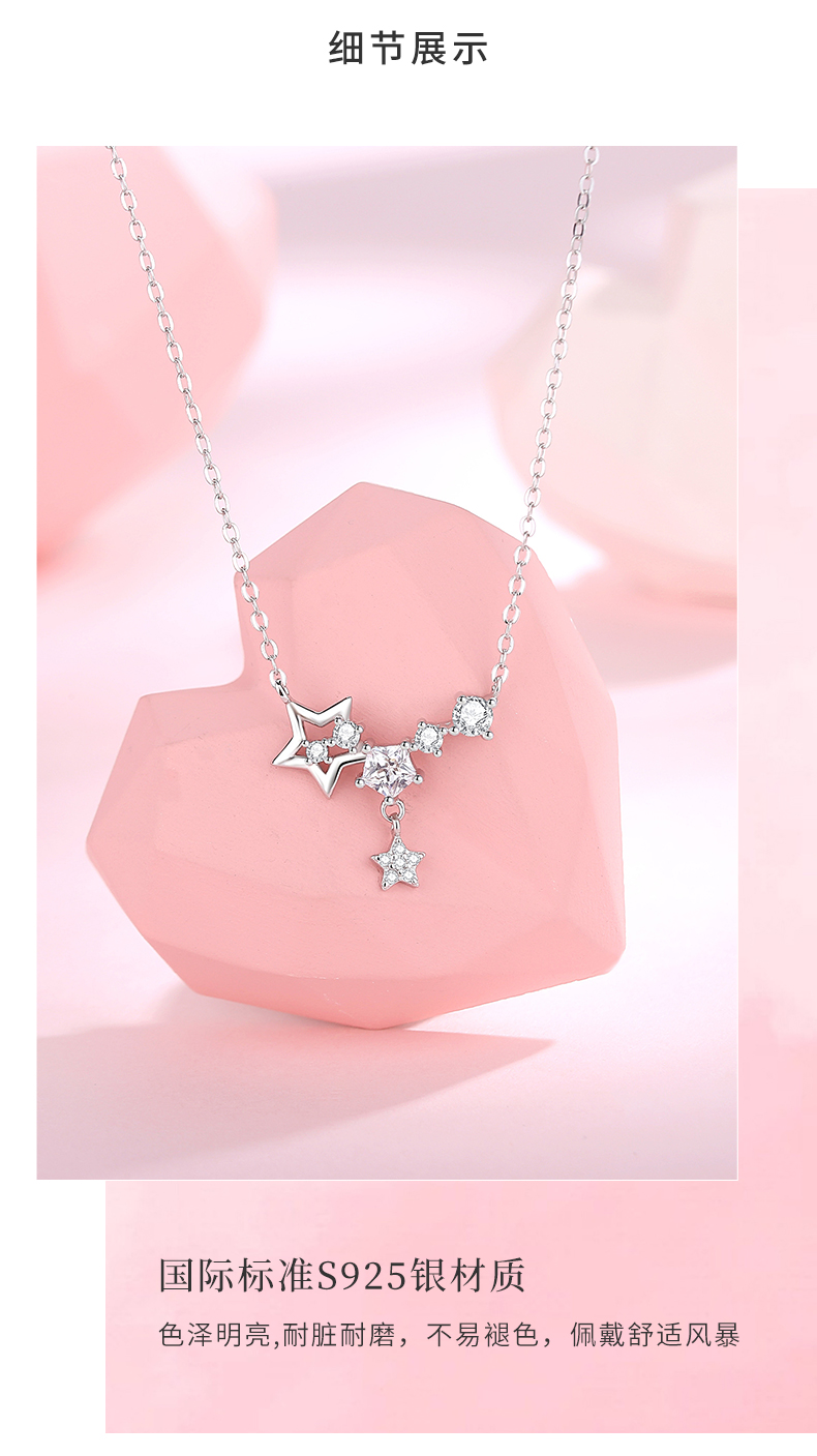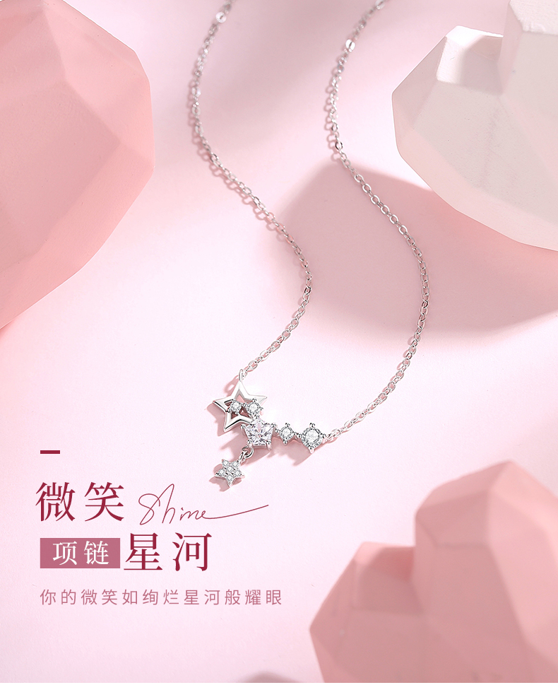卡蒂罗/KADER 璀璨星语项链 925银星辰似海浪漫轻奢设计可调节锁骨链 梦幻银河璀璨星星配饰 女友 礼物