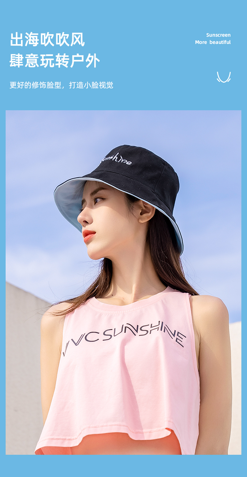 VVC渔夫帽女双面防紫外线防晒帽遮阳太阳帽夏季帽子大帽檐太阳帽