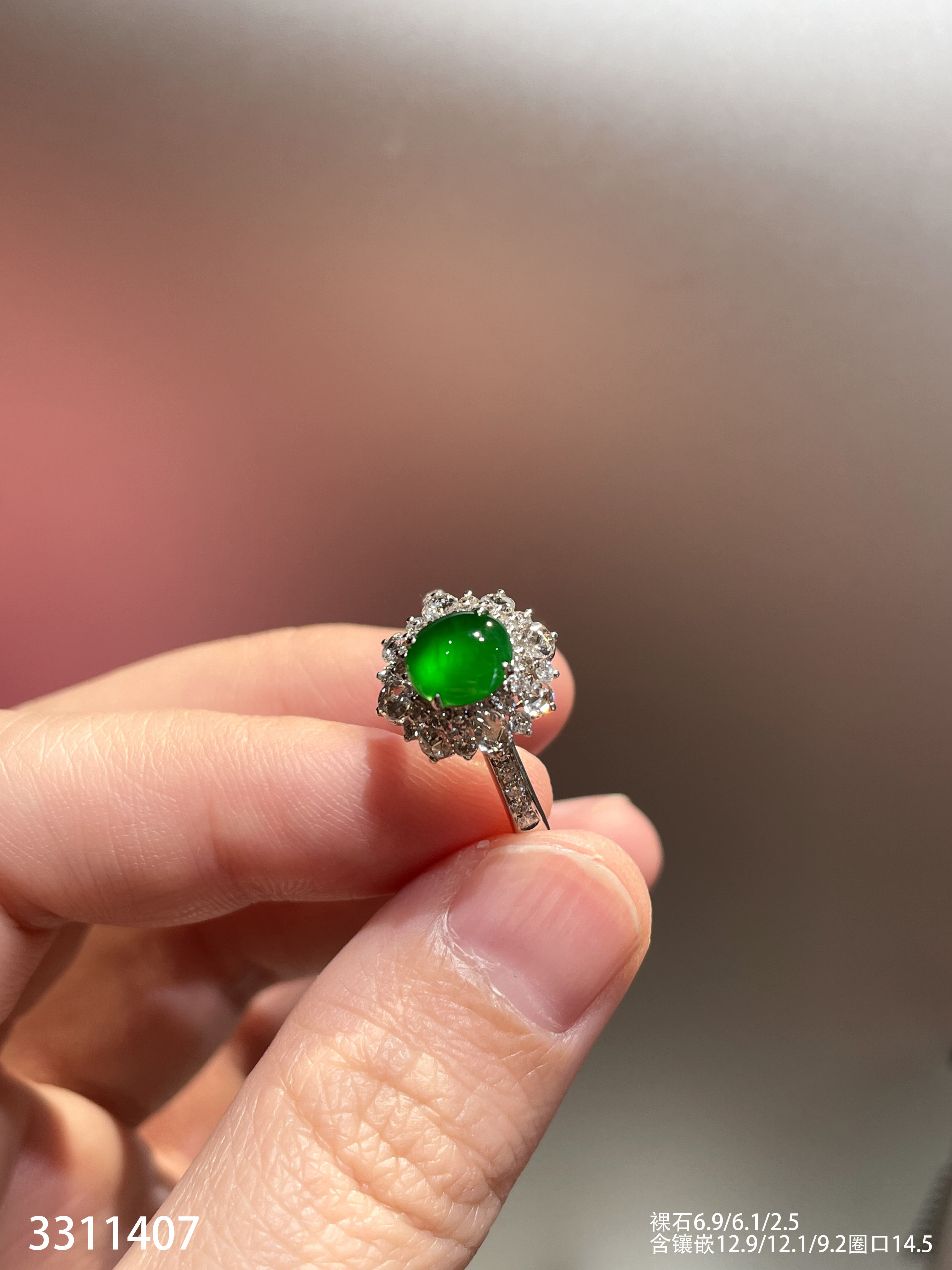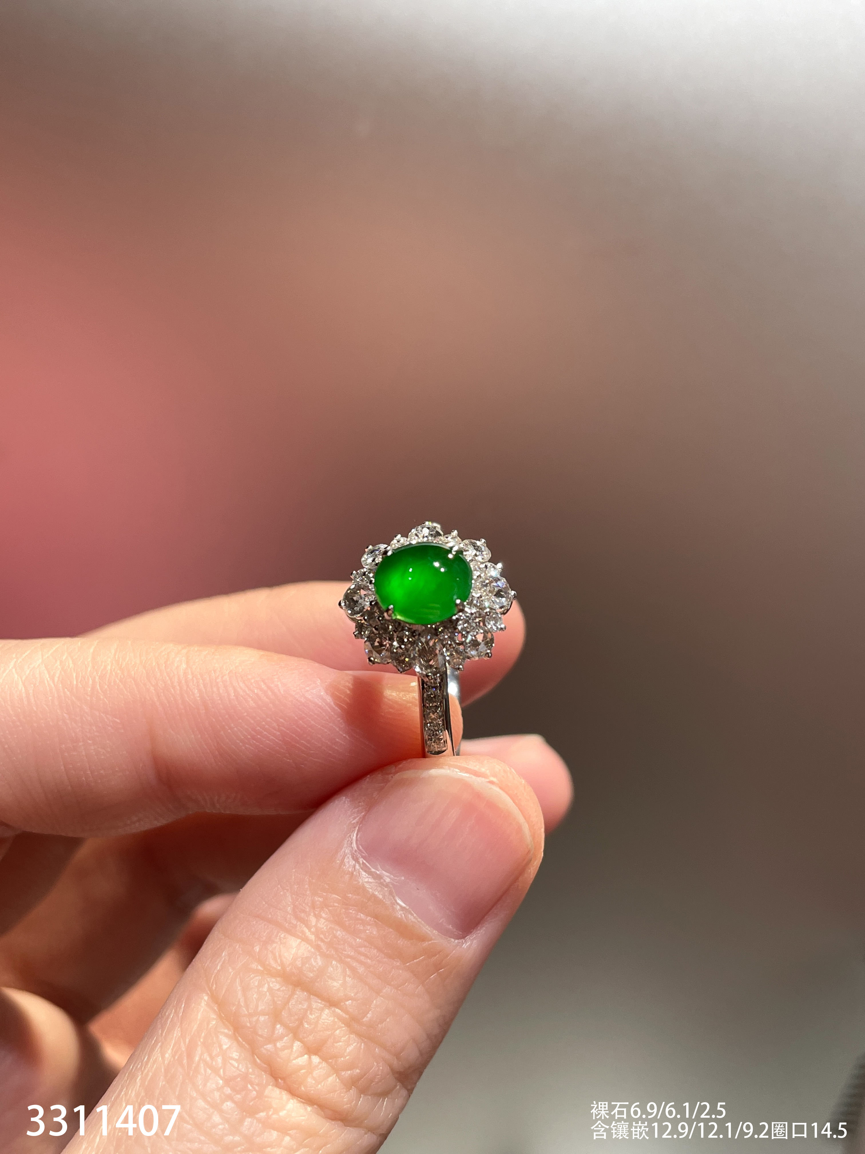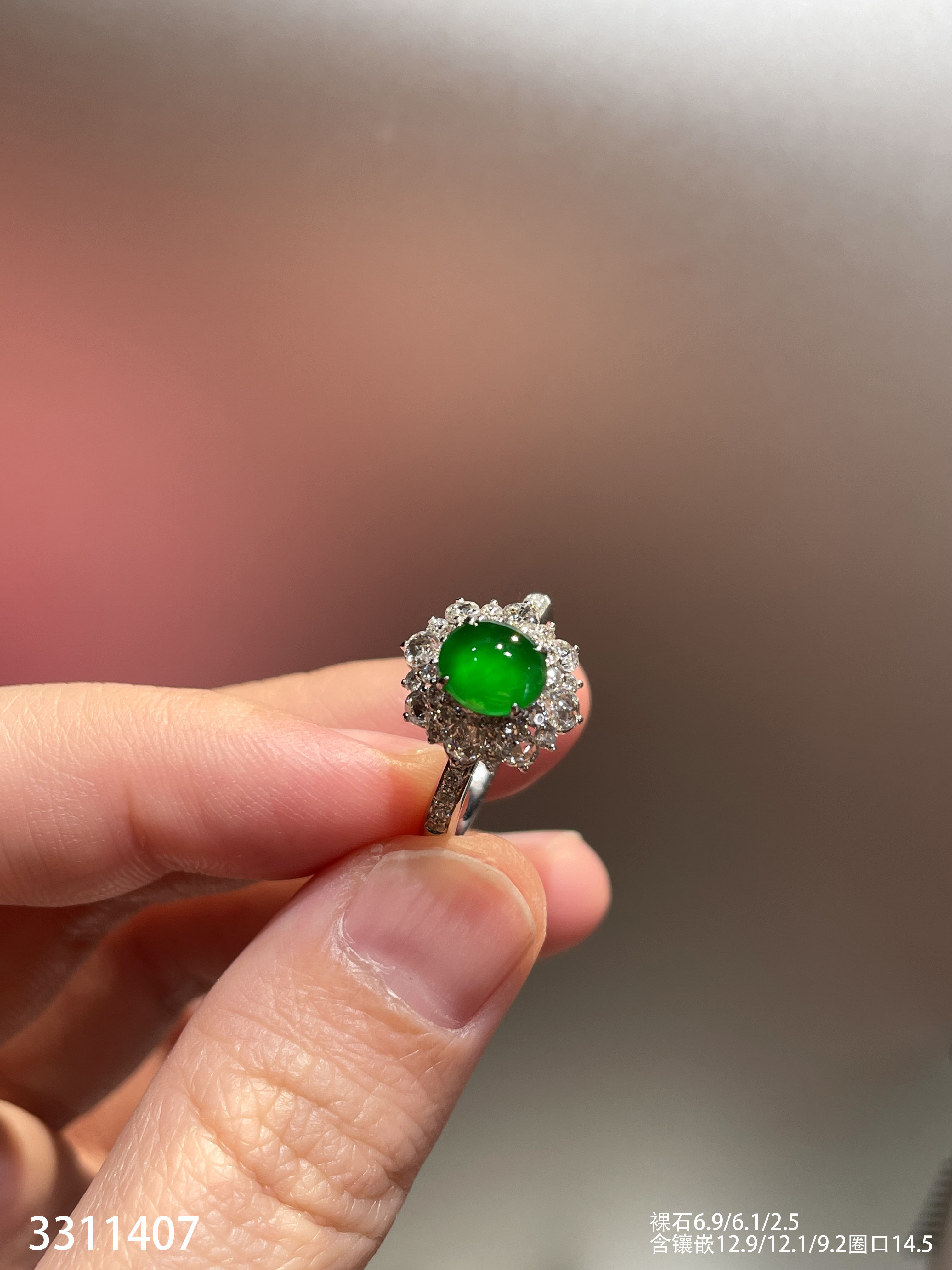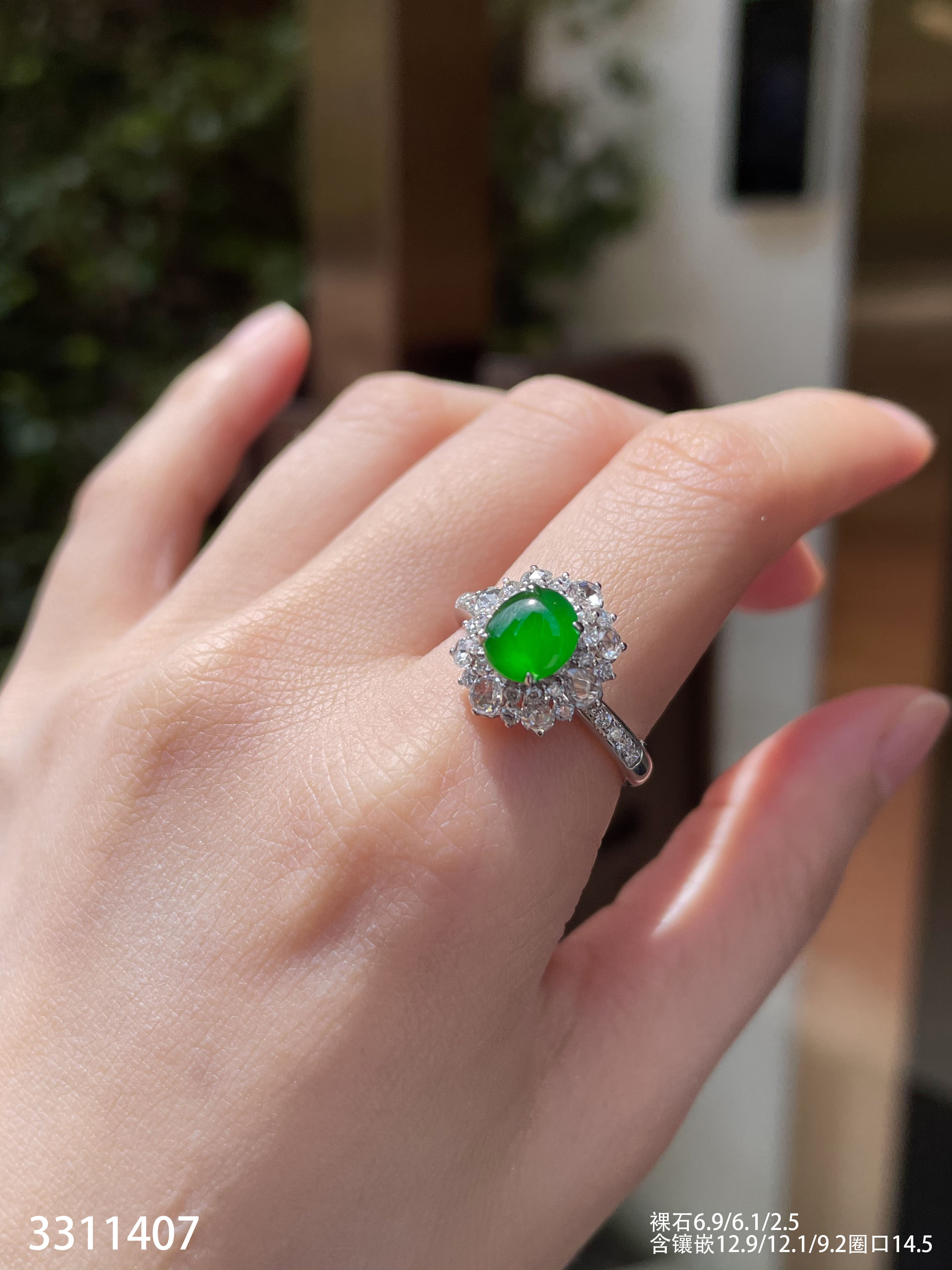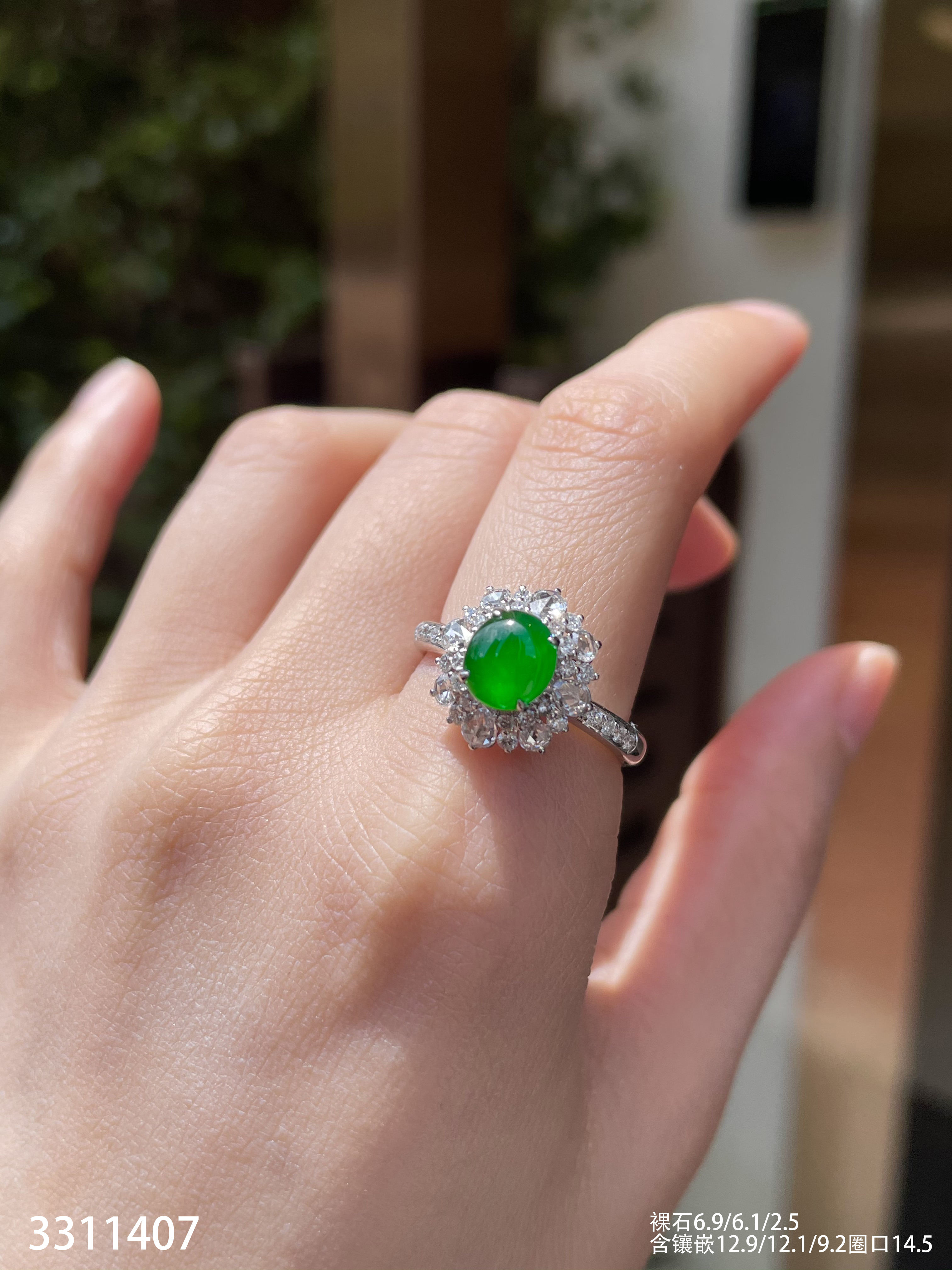 3311407,高冰帝王绿蛋面戒指。具体价格微信咨询