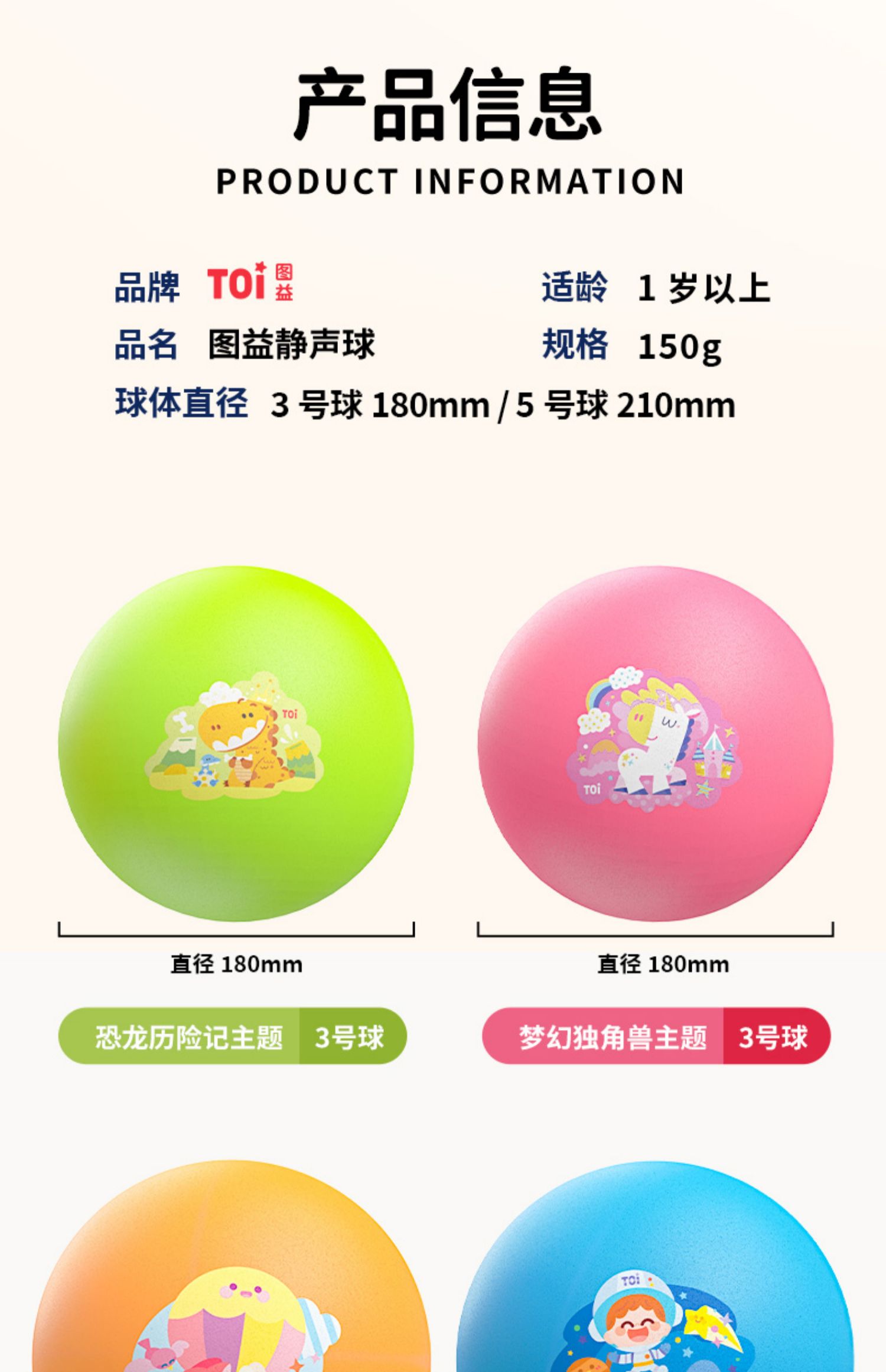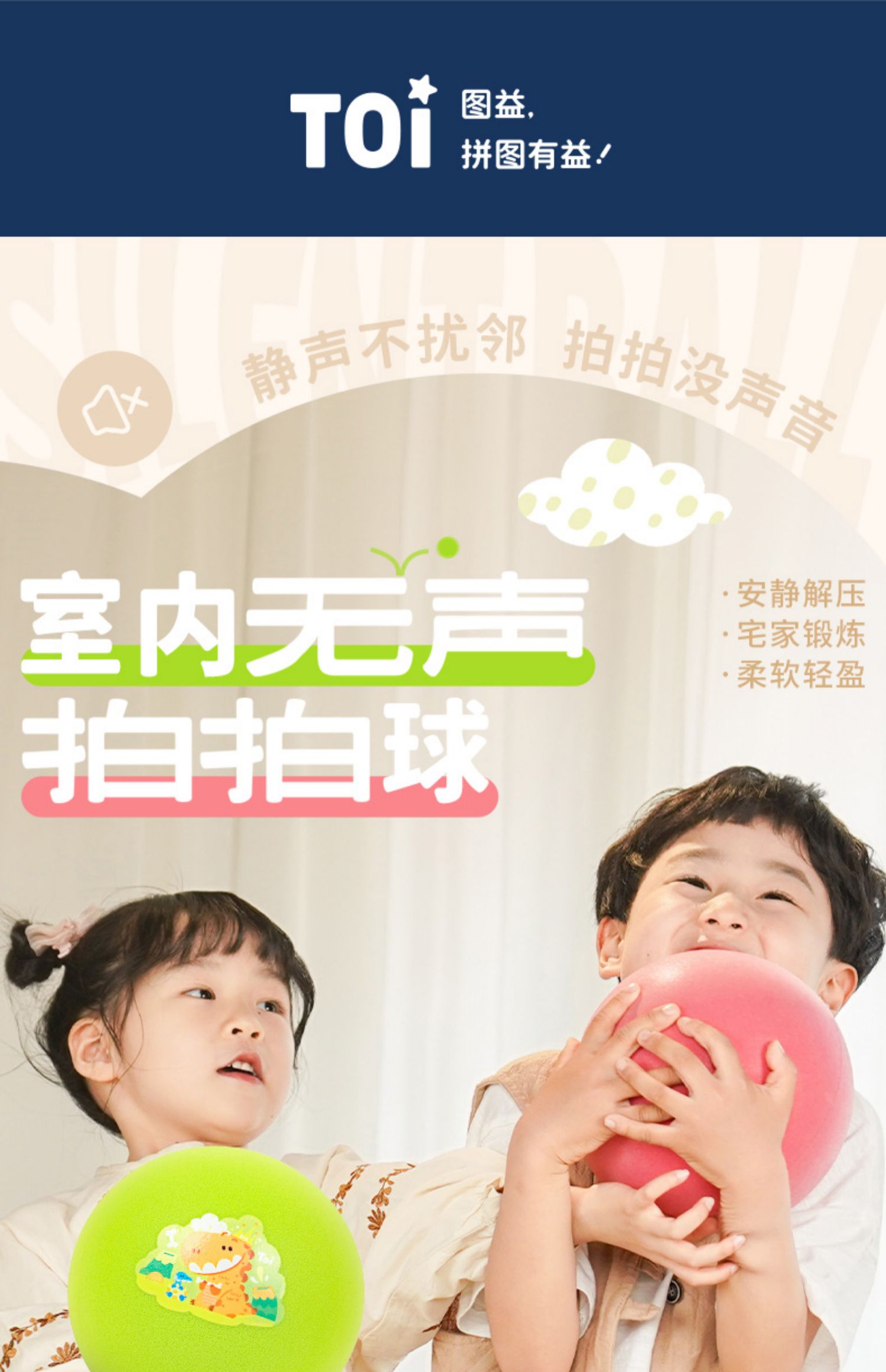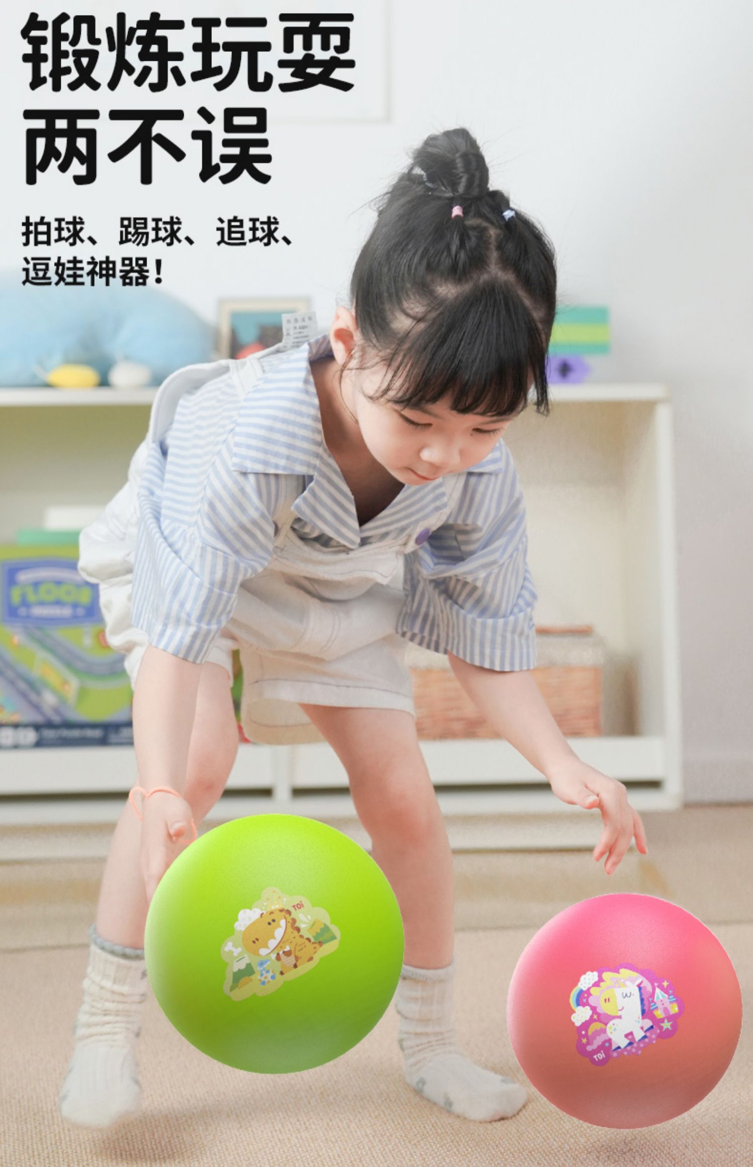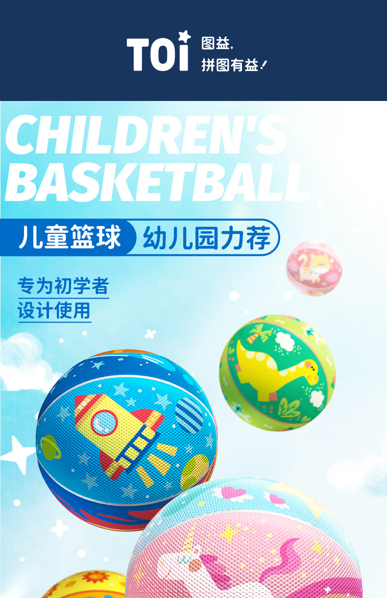 TOI图益儿童篮球拍拍球小皮球类玩具幼儿园训练弹力球室内静音