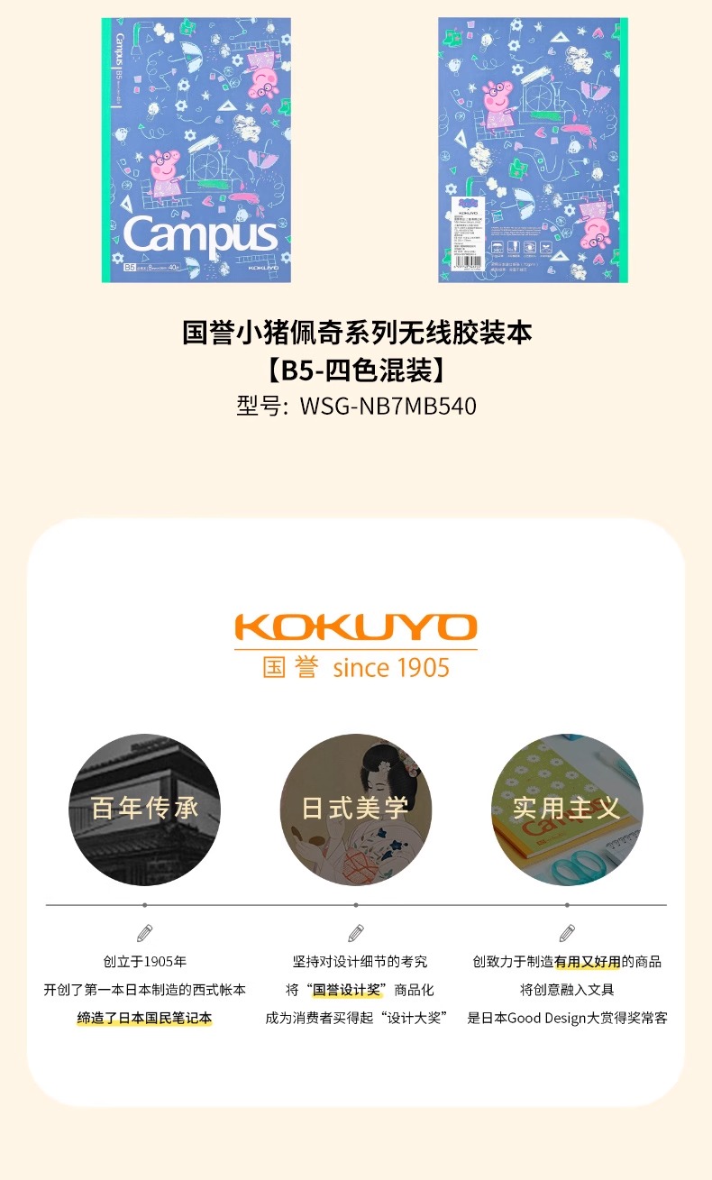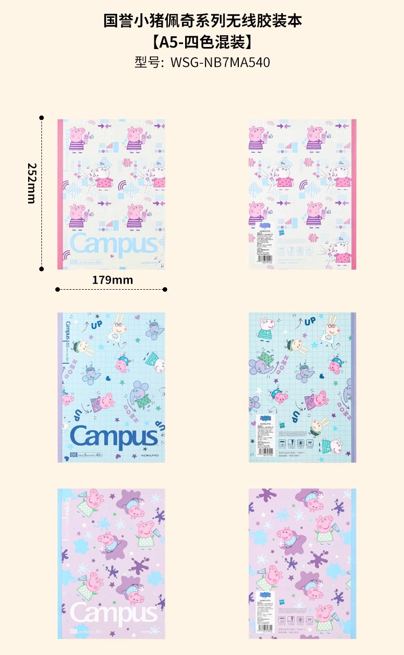 国誉小猪佩奇联名系列无线装订本a5 b5笔记本