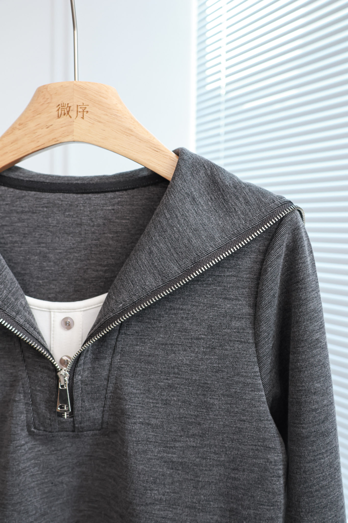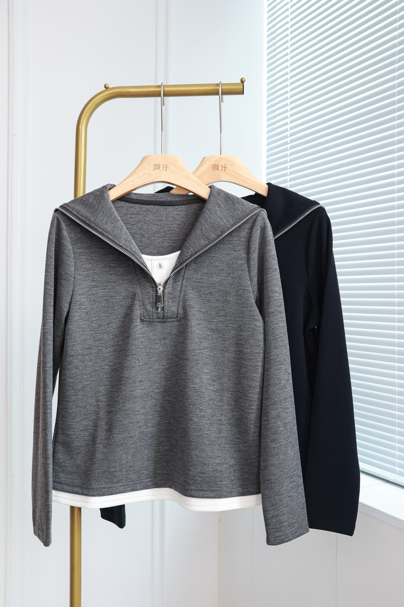 呼吸海屿|韩系假两件拉链上衣