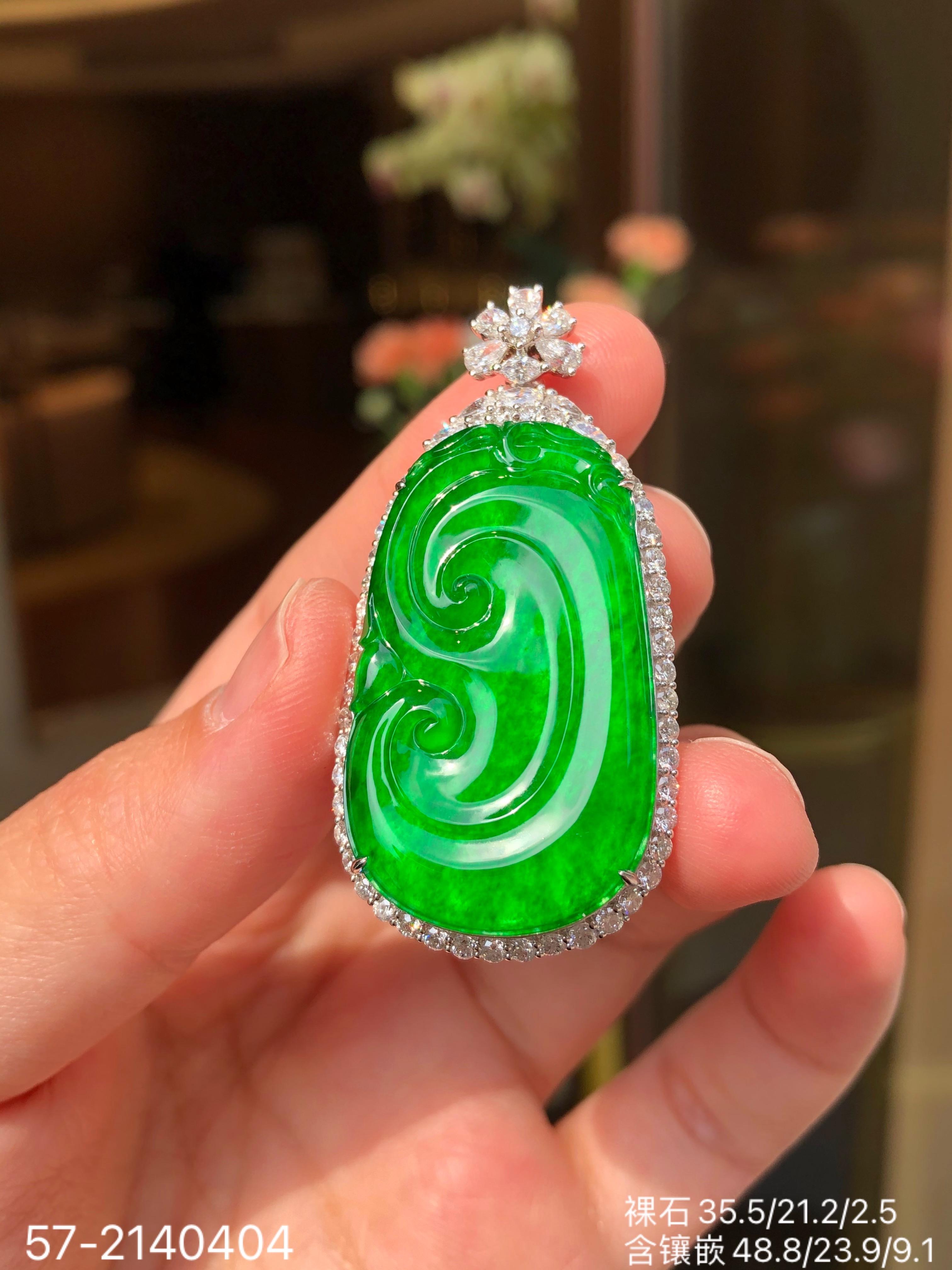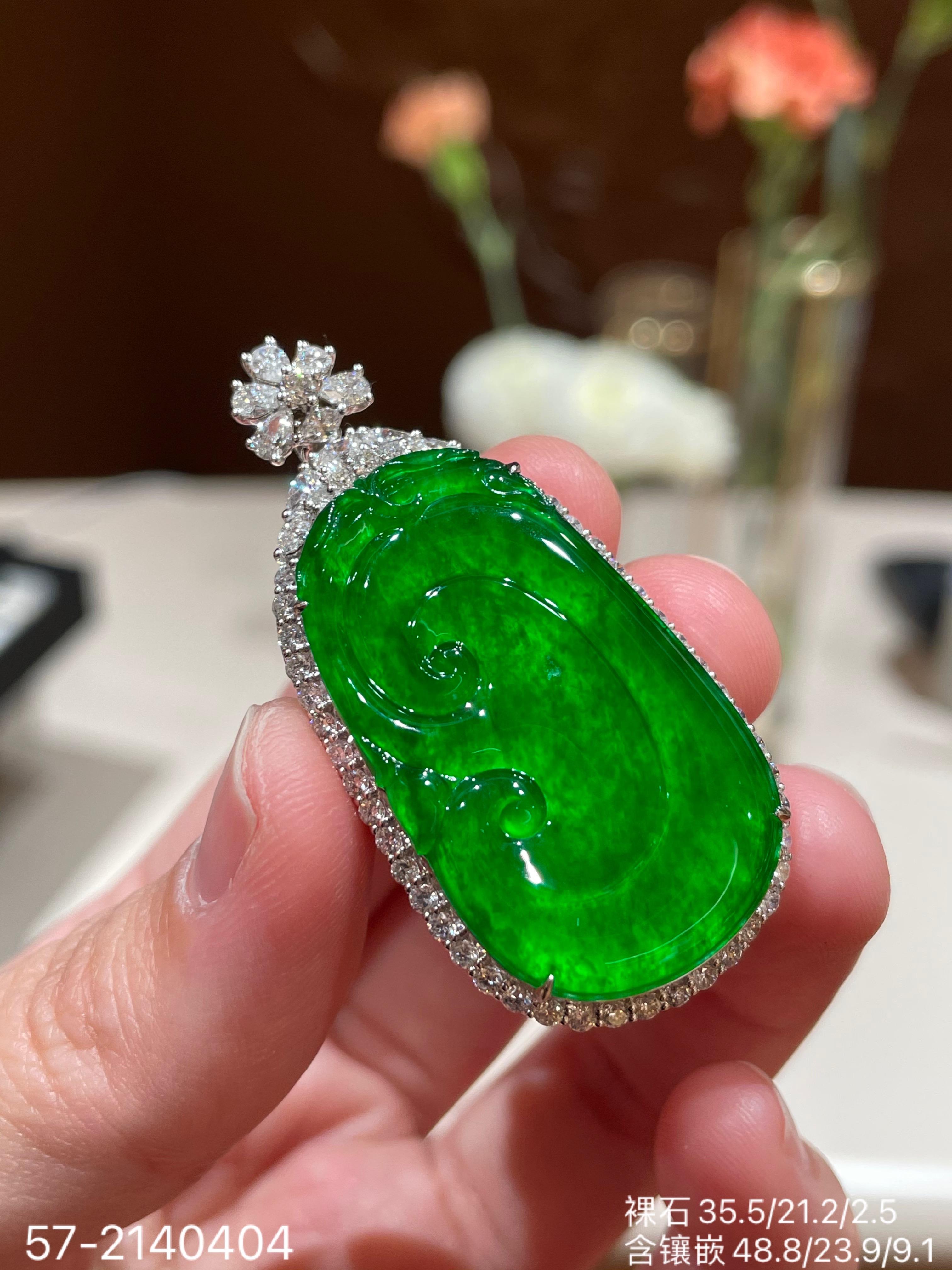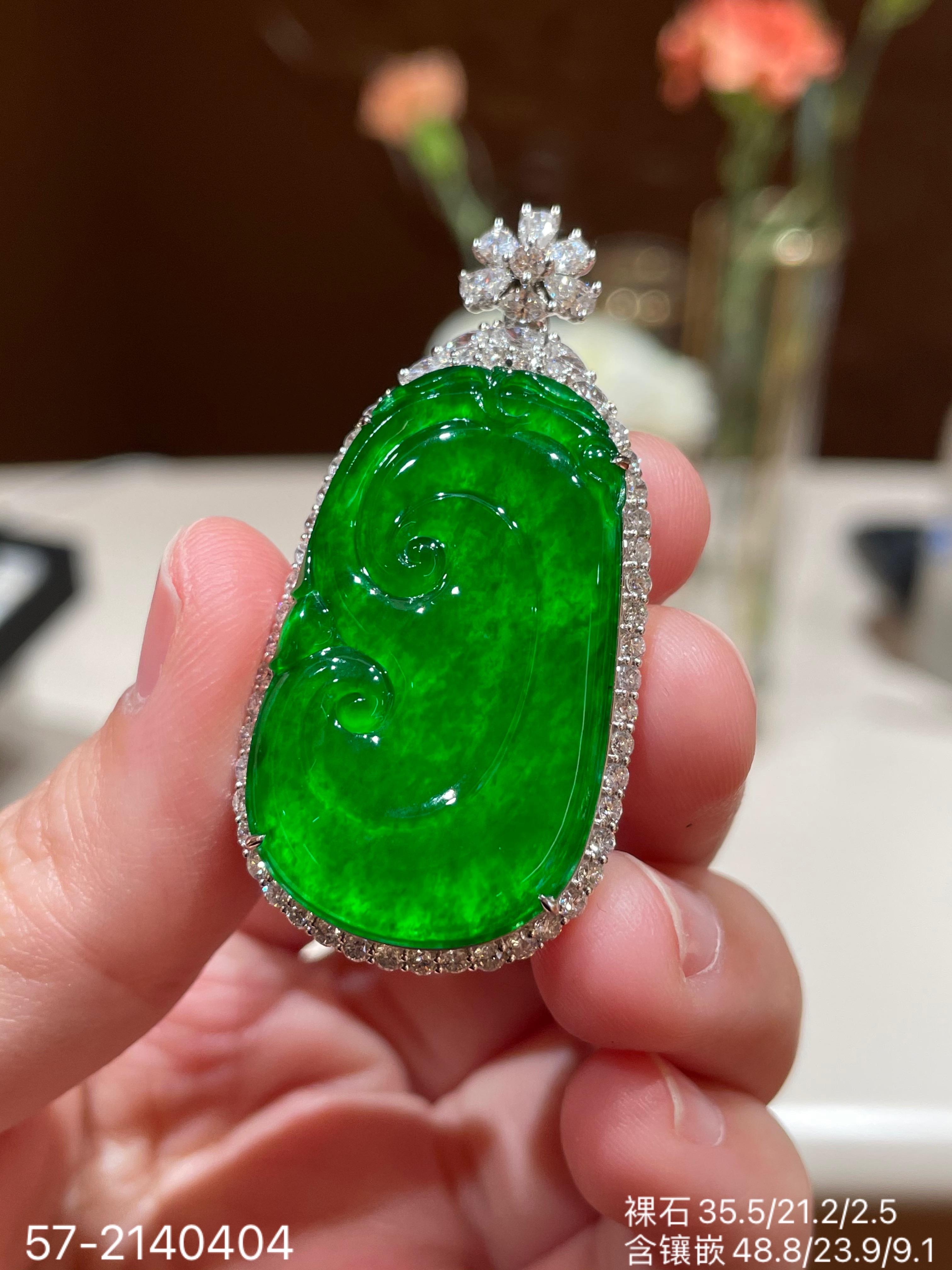 高冰帝王绿如意吊坠 【57-2140404】具体价格微信咨询