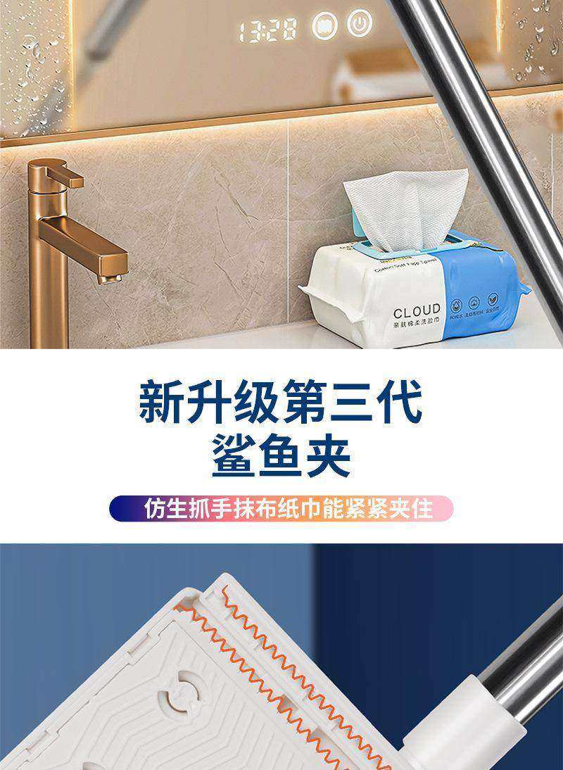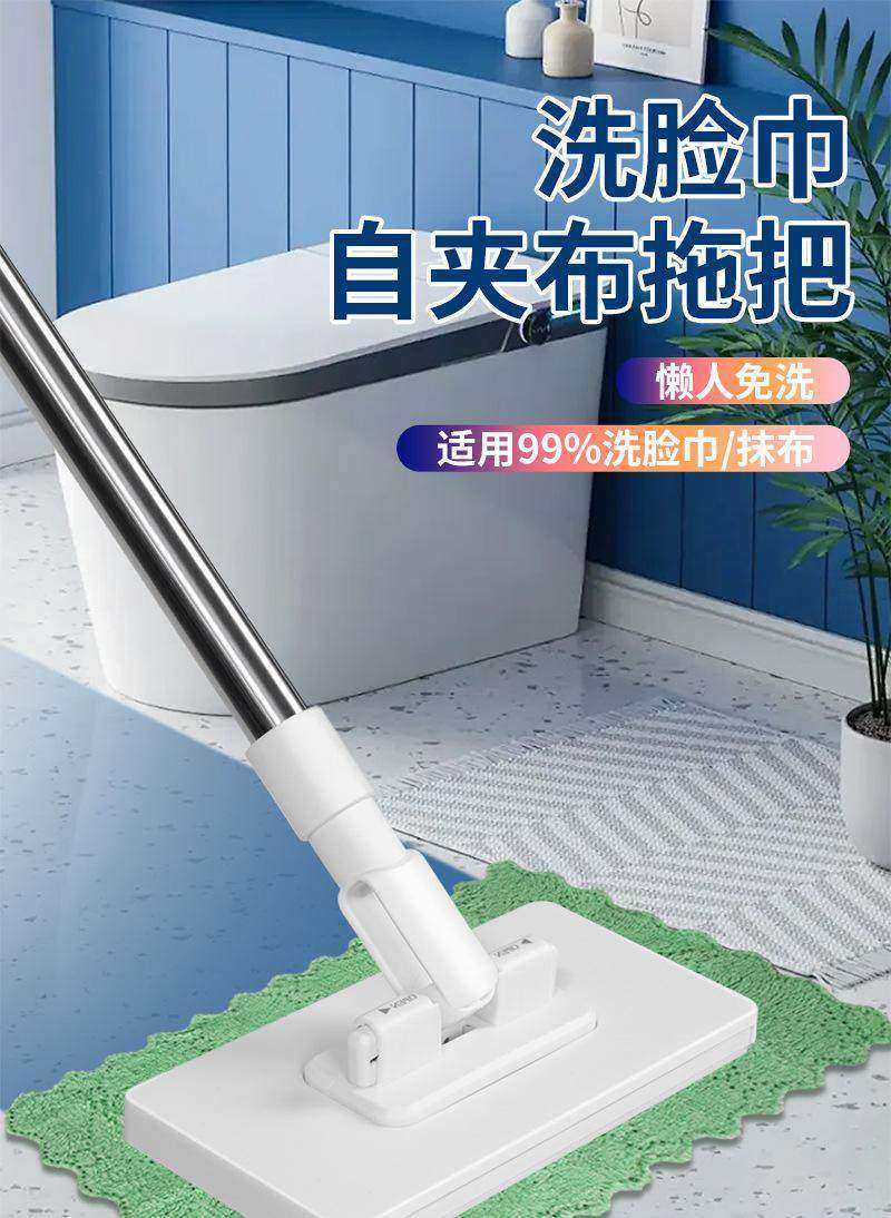 清仓特惠【9.9抢可夹布小拖把,送2块布】万物皆可夹,洗脸巾/抹布一键夹布拖把 夹个洗脸巾用完丢掉 干湿两用 高效省力 卫生间浴室墙面清洁地板拖