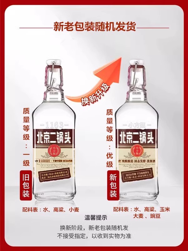 北京二锅头出口小方瓶清香型白酒42度粮食酒三色混标500ml*12瓶装金奖小方瓶