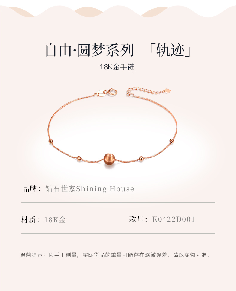 【时尚K金】钻石世家 心恋系列 18K金手链(约0.64±0.1克)