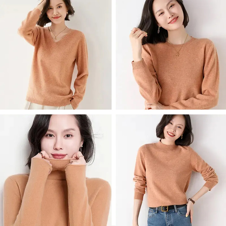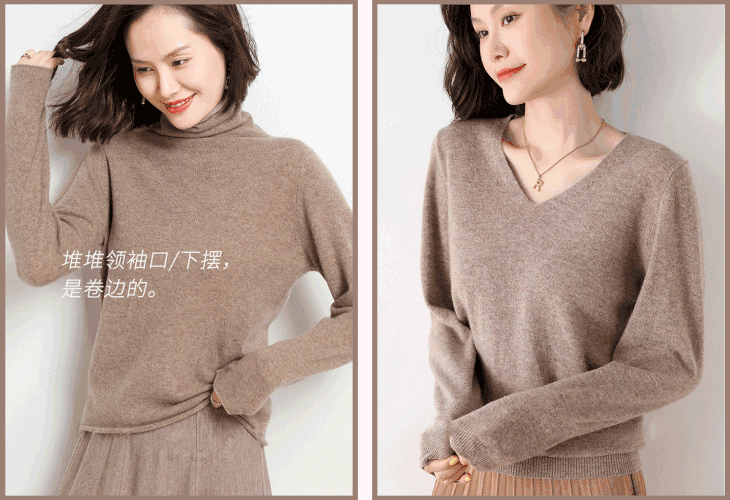 4种领型:V领、圆领、堆堆领、半高领,选择性更多,足够让你换着口味穿,解锁秋冬的穿搭秘籍!