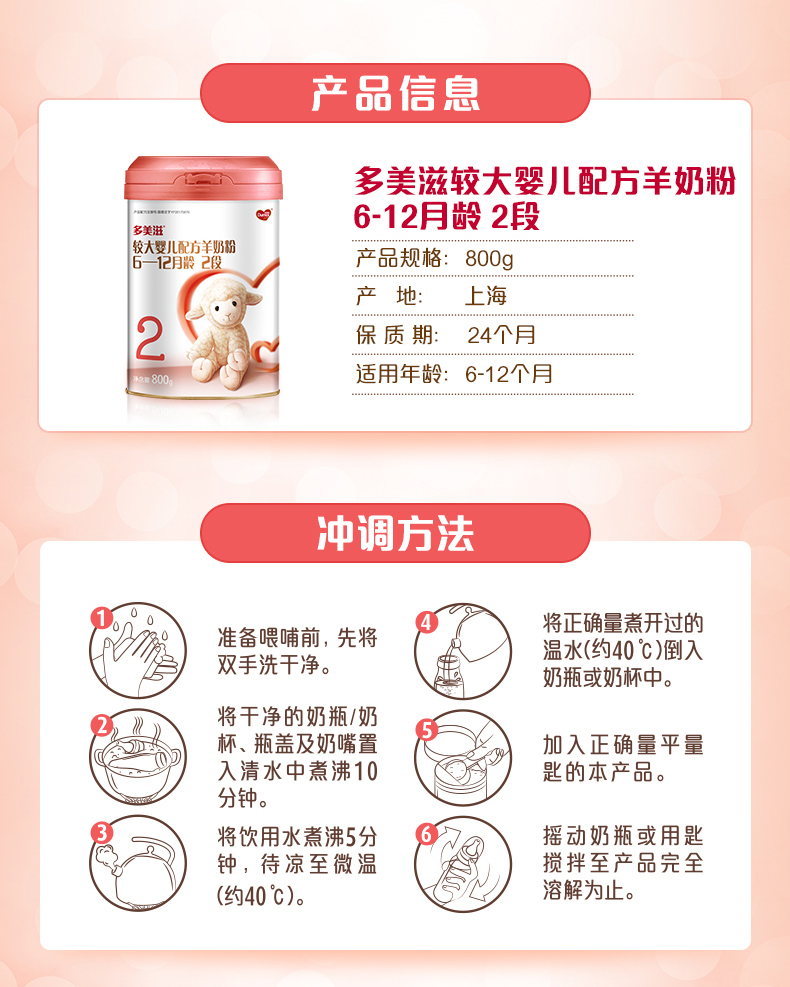 多美滋(Dumex)较大婴儿配方羊奶粉2段800g(6-12月龄)【多美滋】