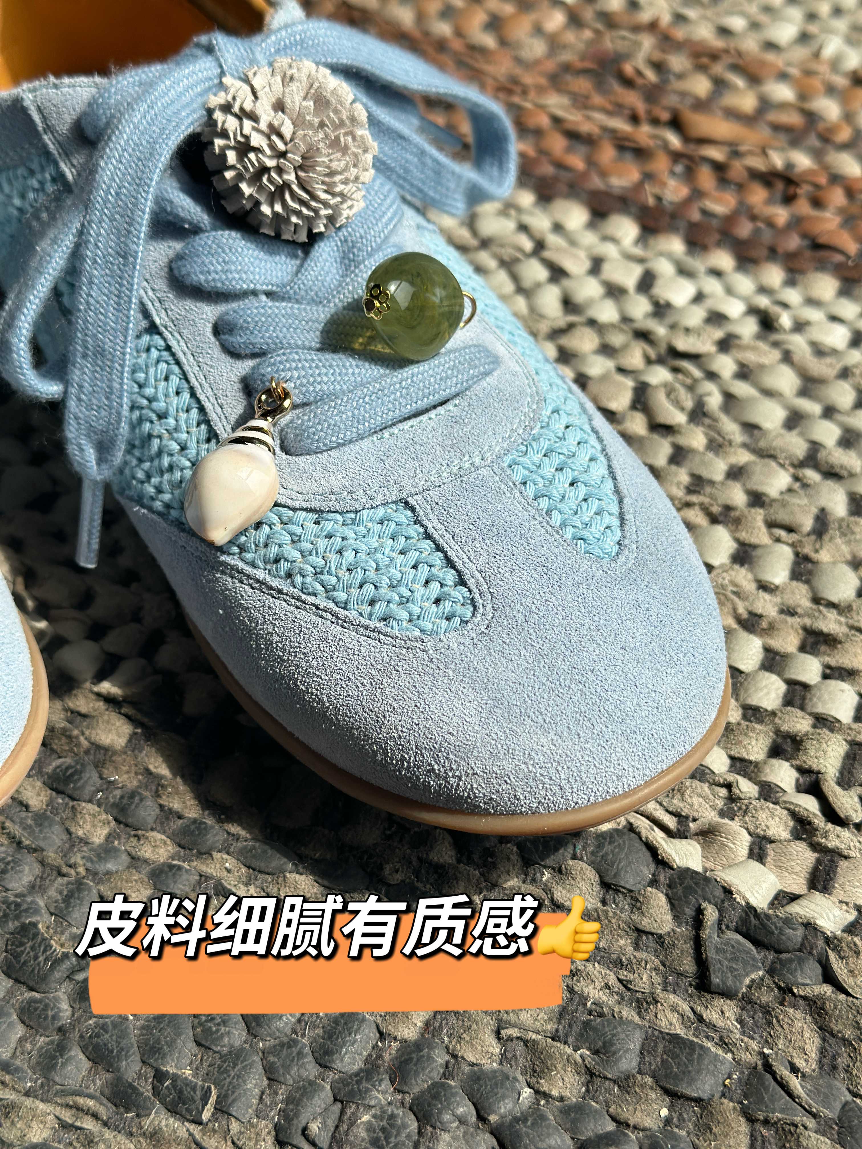 灵动细节好戳人!当时去工厂试鞋子就觉得这个小松果和小滴溜挂件特别可爱!上脚又有一种乖乖嗲嗲的味道~
