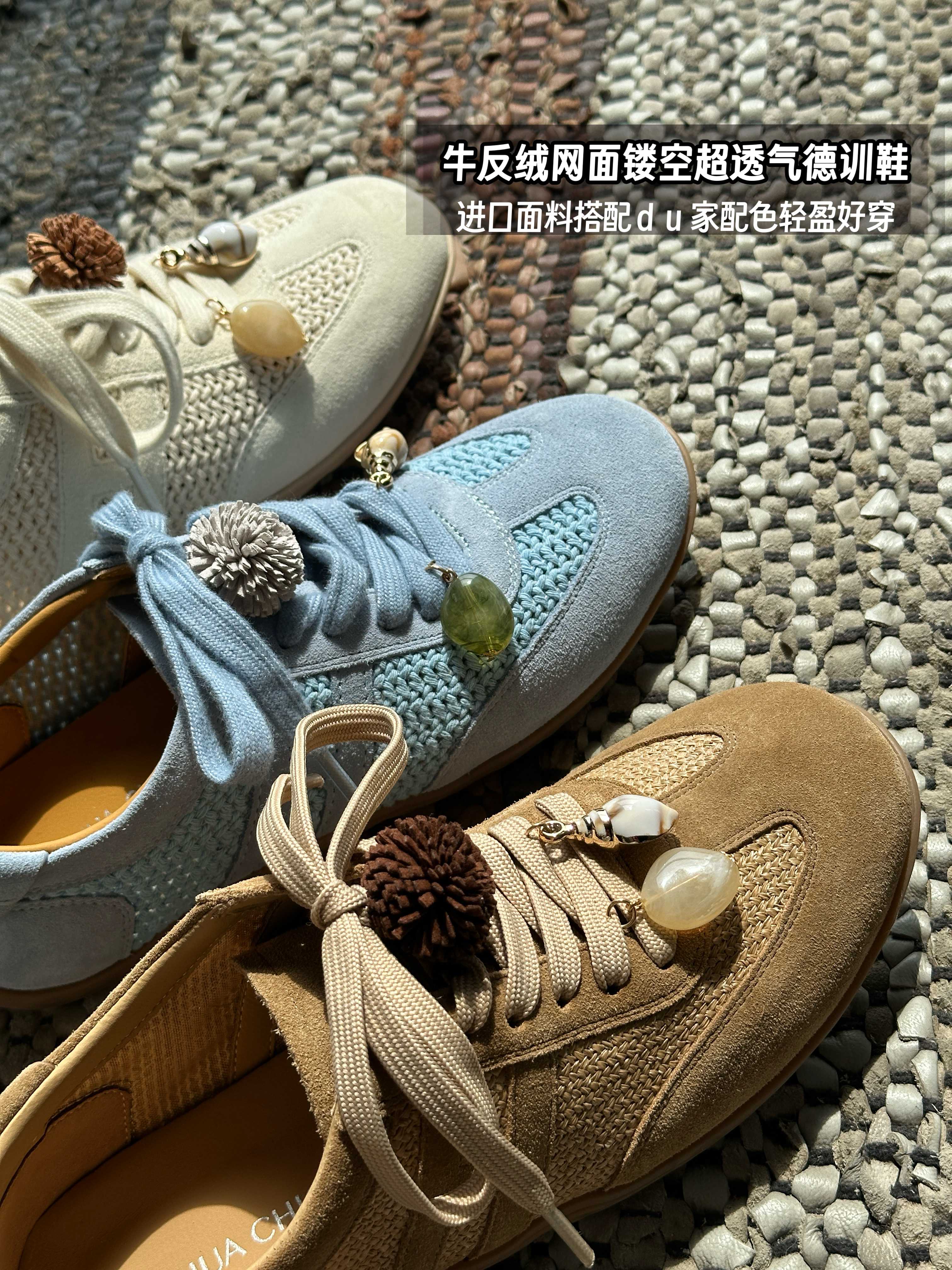 春夏秋三季可穿牛反绒德训鞋、镂空网面自带透气呼吸感!轻盈舒适防滑有质感、无论通勤、旅行✈️都能无缝切换,兼具功能性与颜值的俏皮美鞋!轻盈耐磨大底,脚感如履平地!