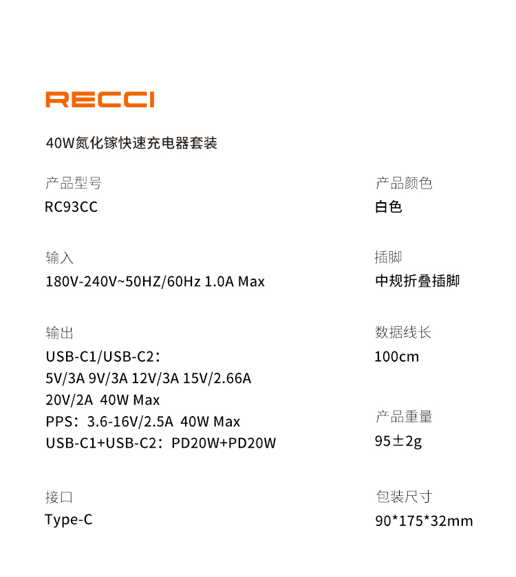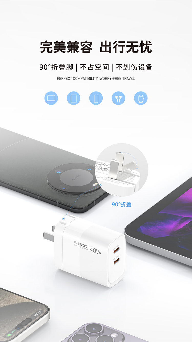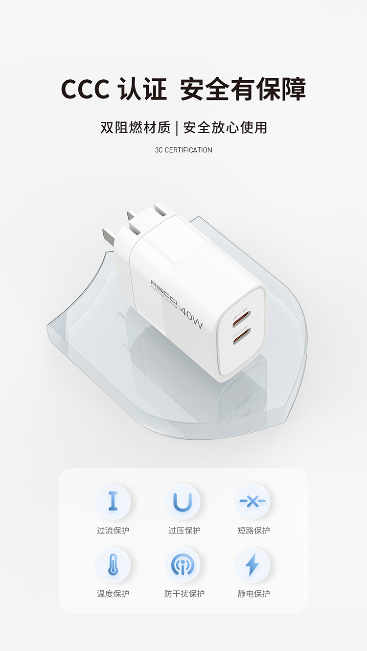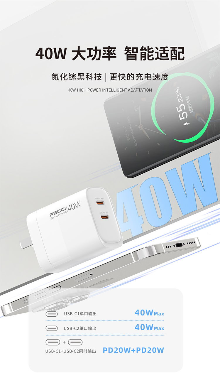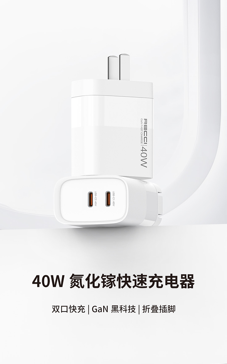 Recci40W氮化镓充电头适用苹果充电器