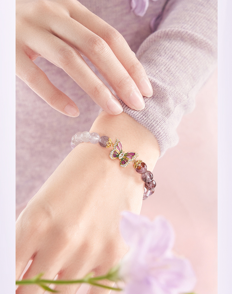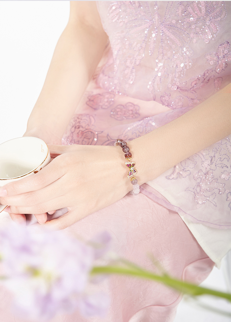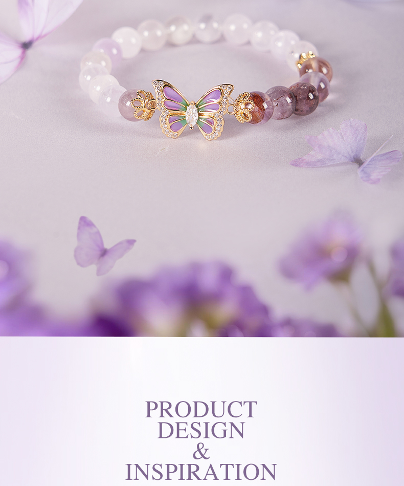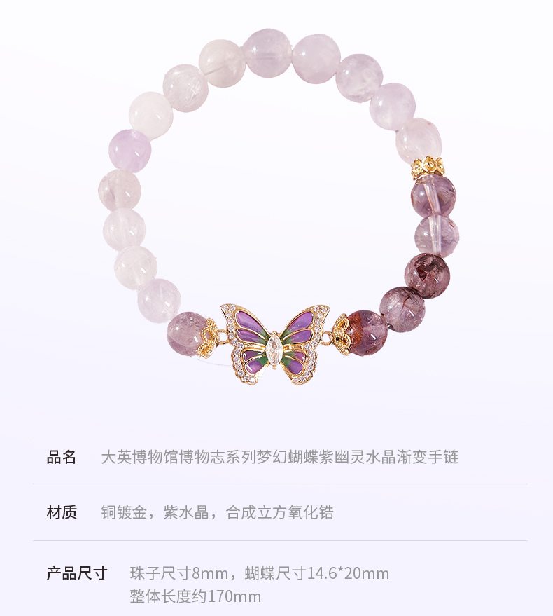 大英博物馆 博物志系列 梦幻蝴蝶 紫幽灵水晶渐变手链