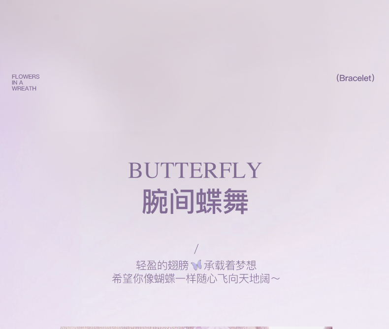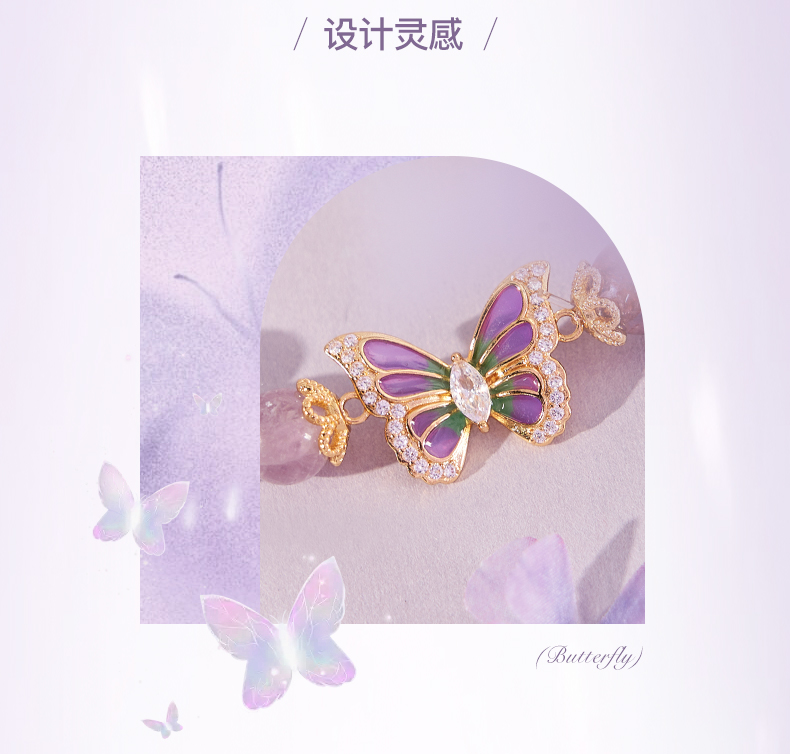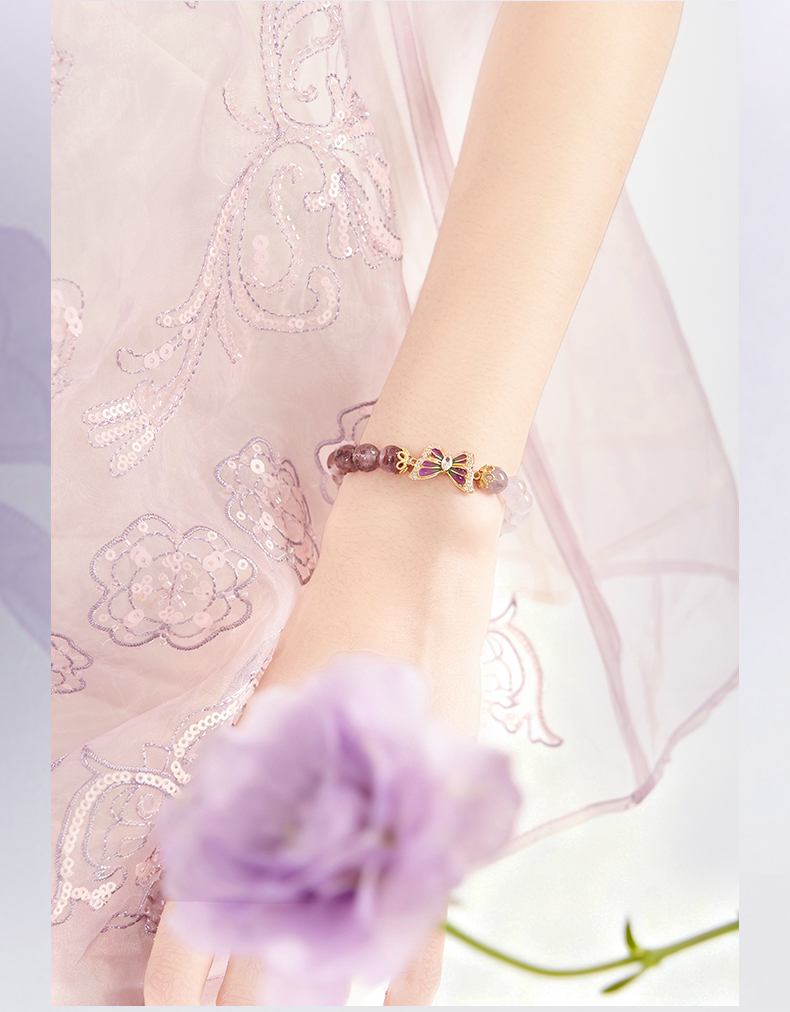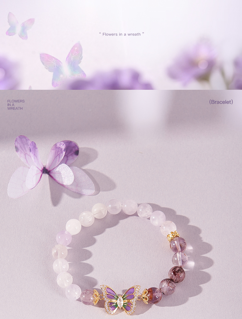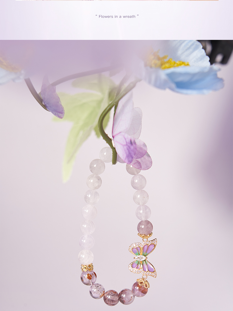 大英博物馆 博物志系列 梦幻蝴蝶 紫幽灵水晶渐变手链