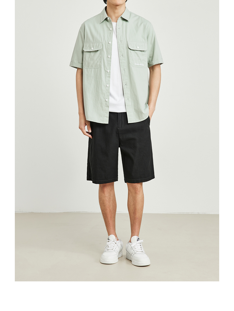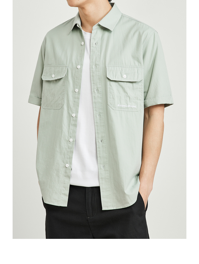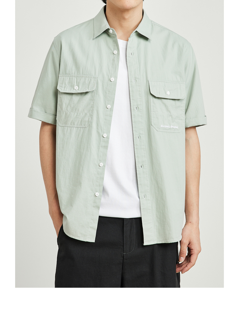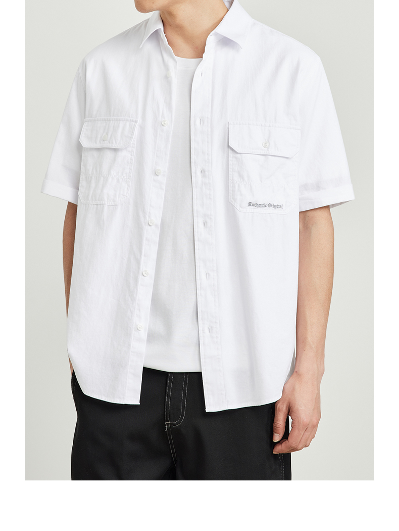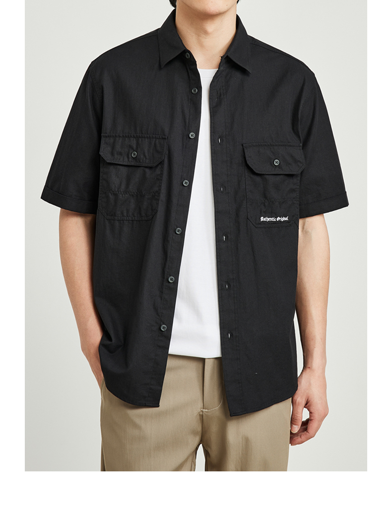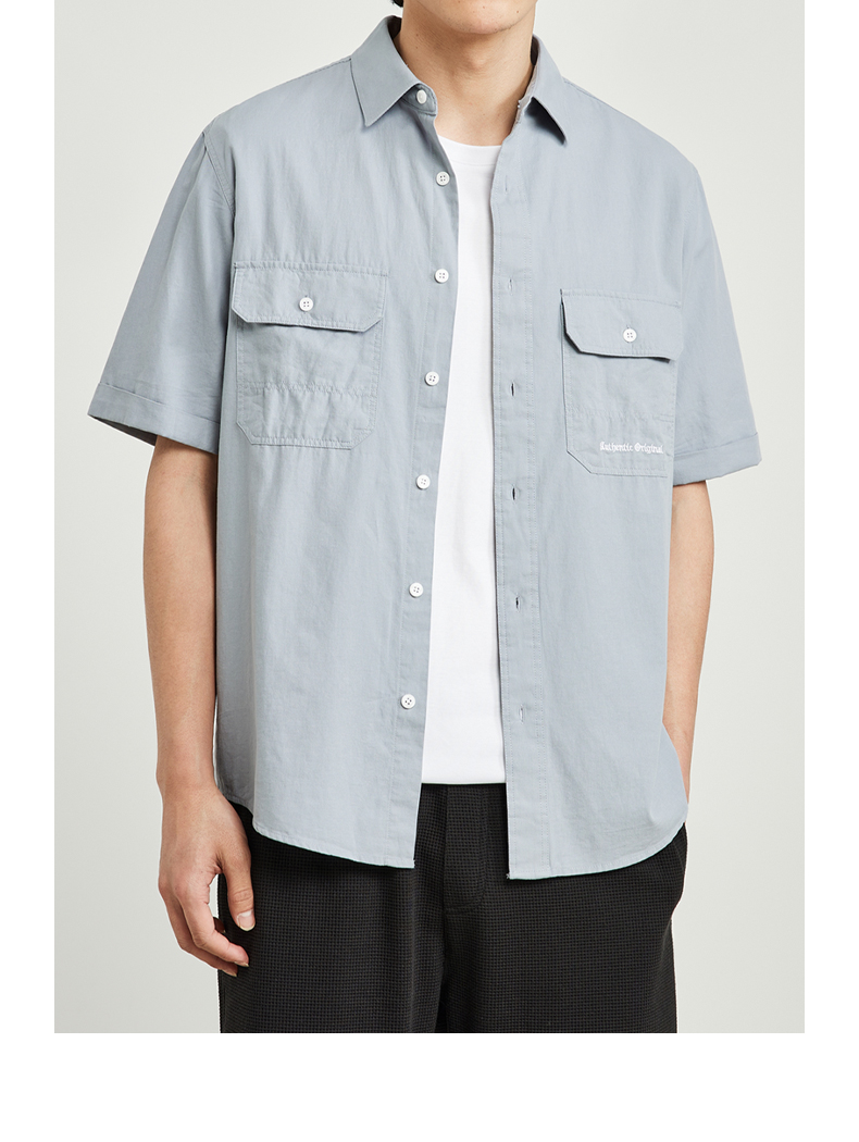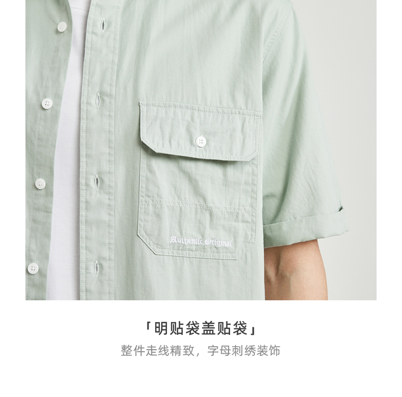 墨麦客2022夏季新款男装字母刺绣短袖衬衫男士薄款宽松工装50088