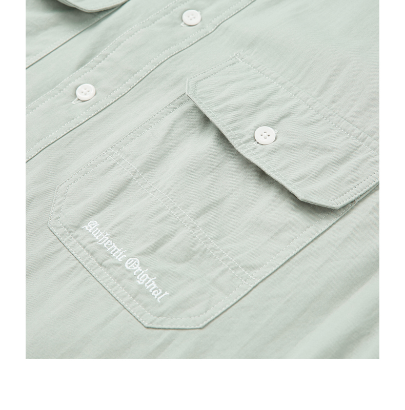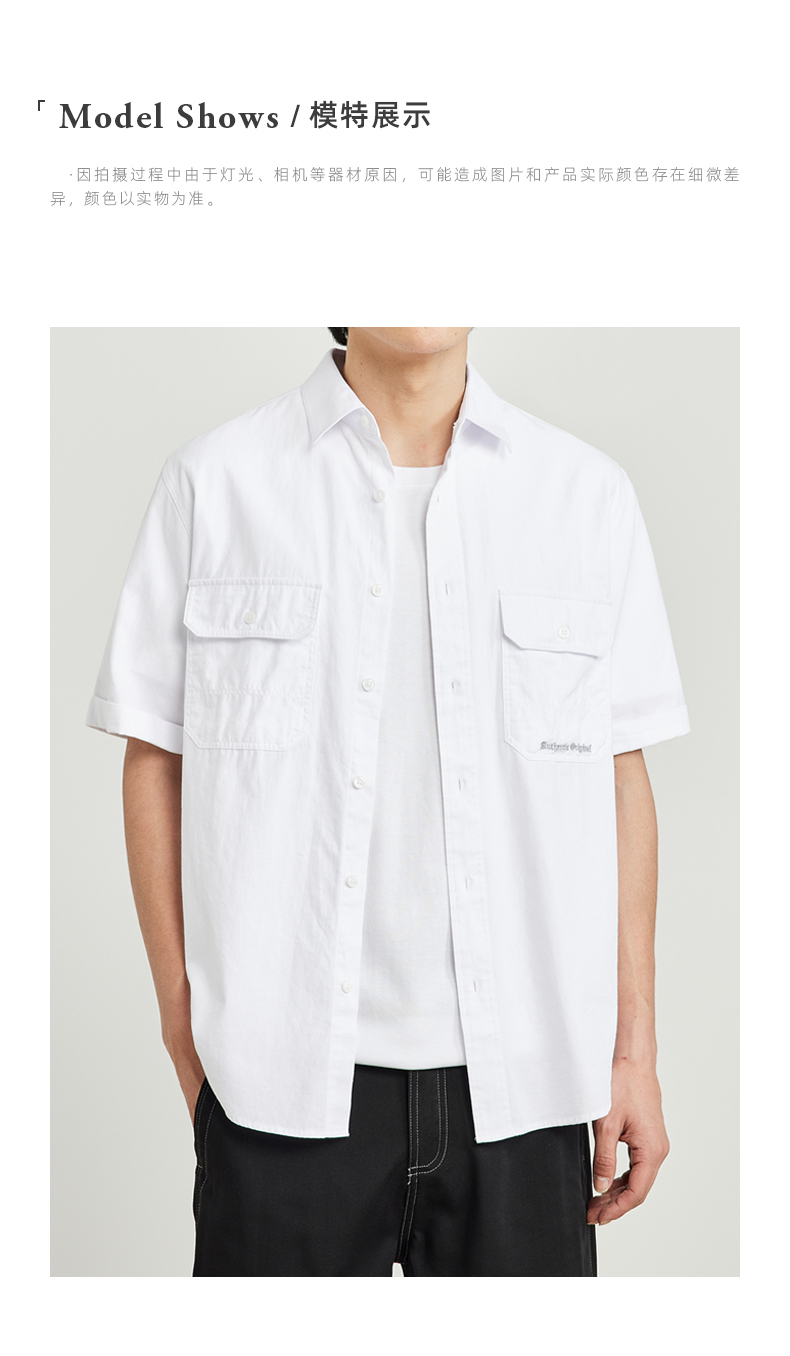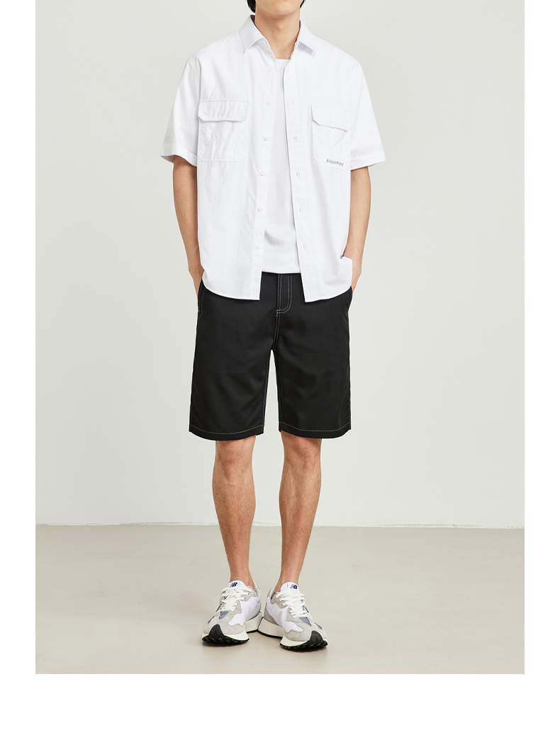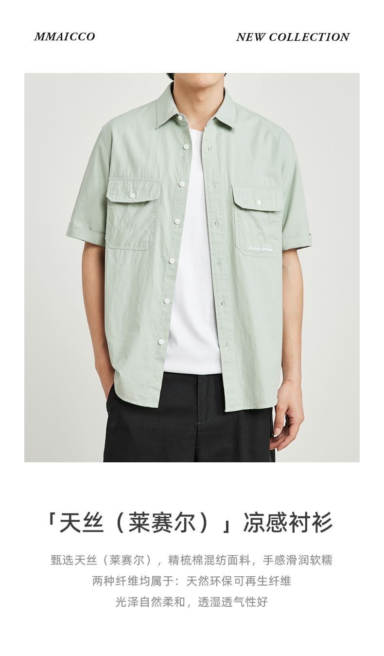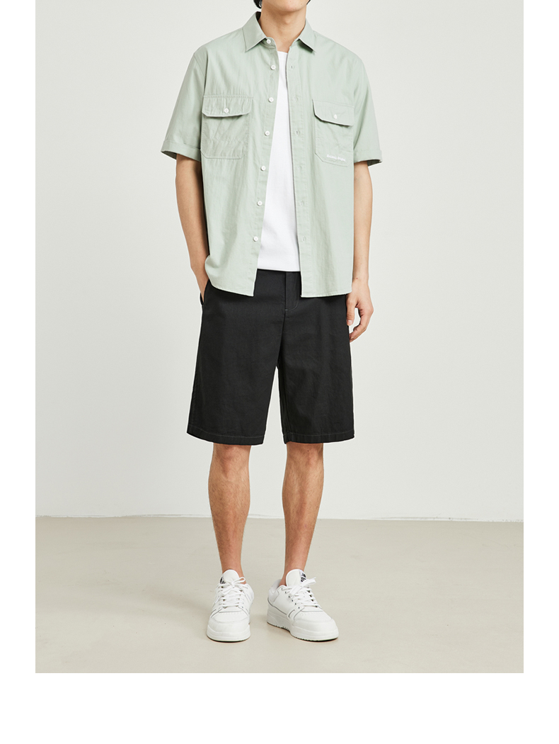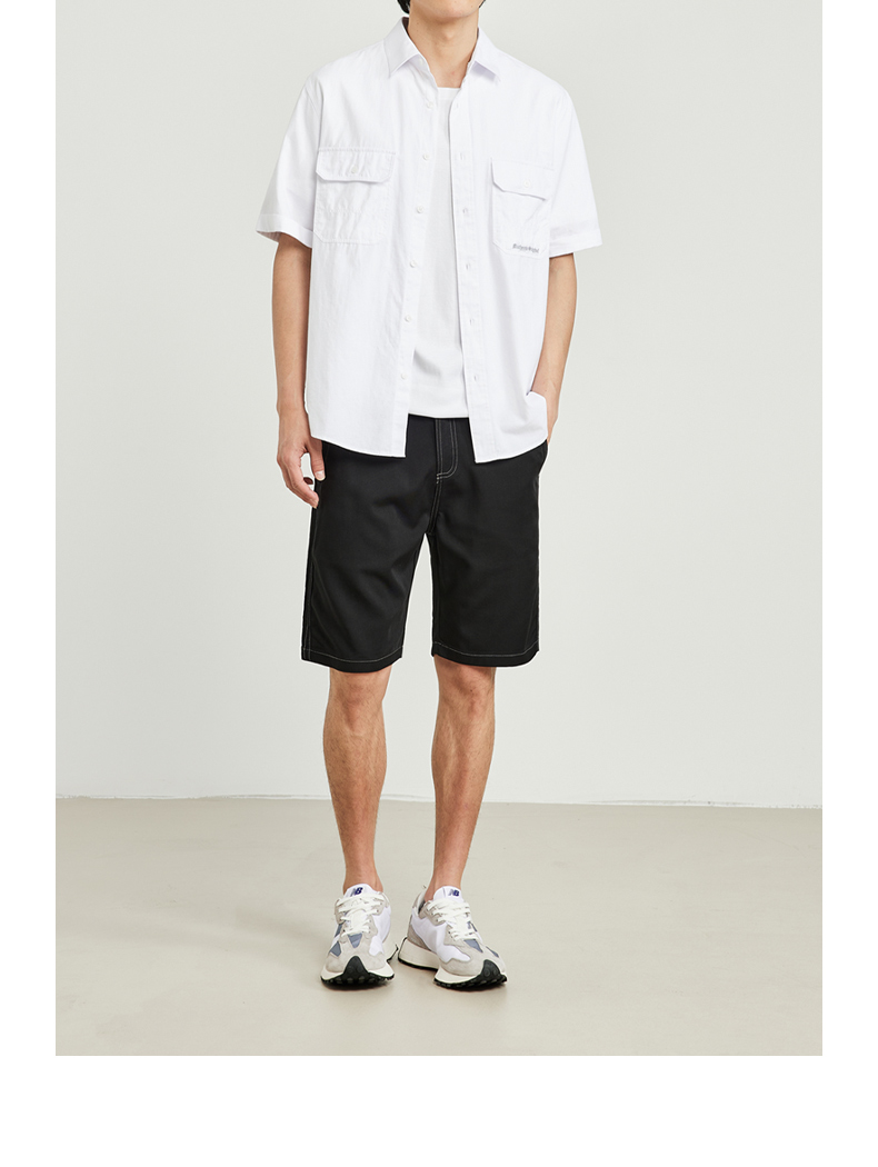 墨麦客2022夏季新款男装字母刺绣短袖衬衫男士薄款宽松工装50088