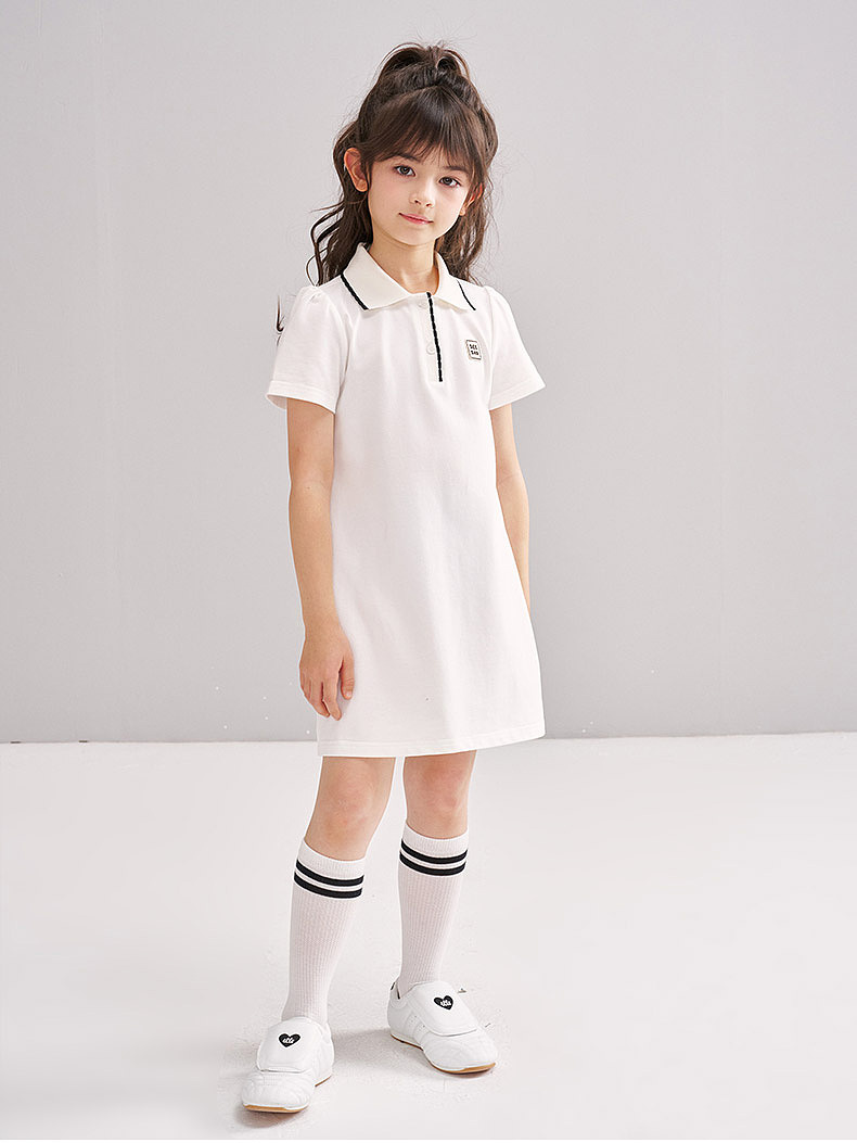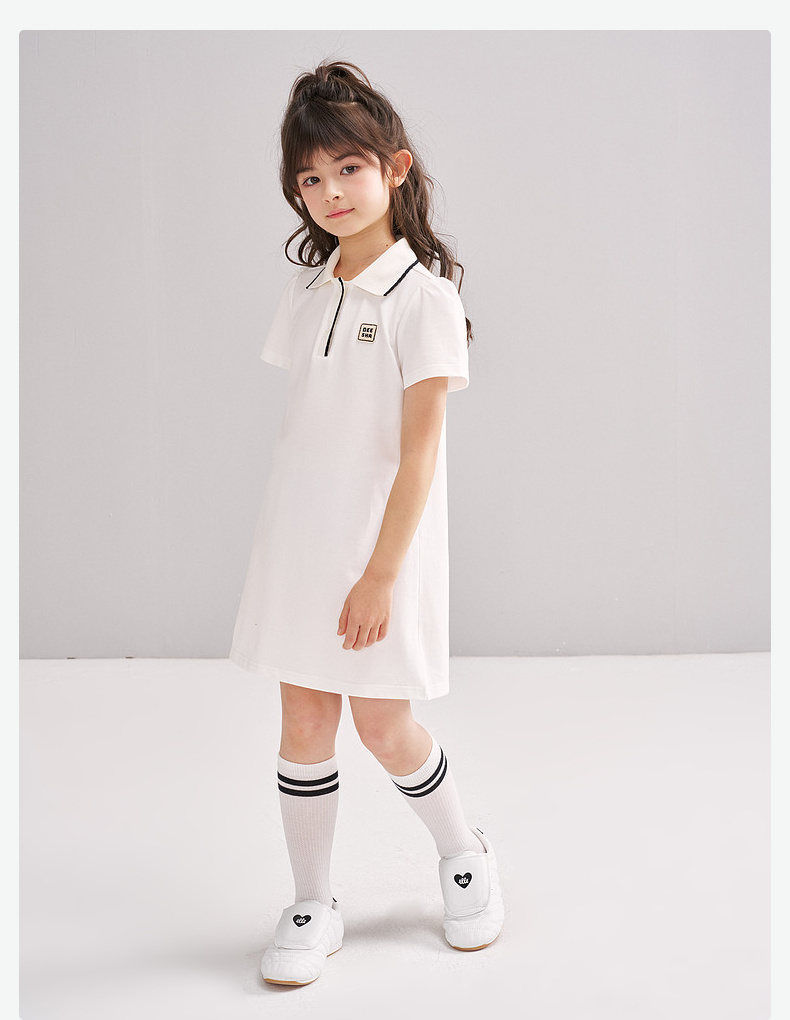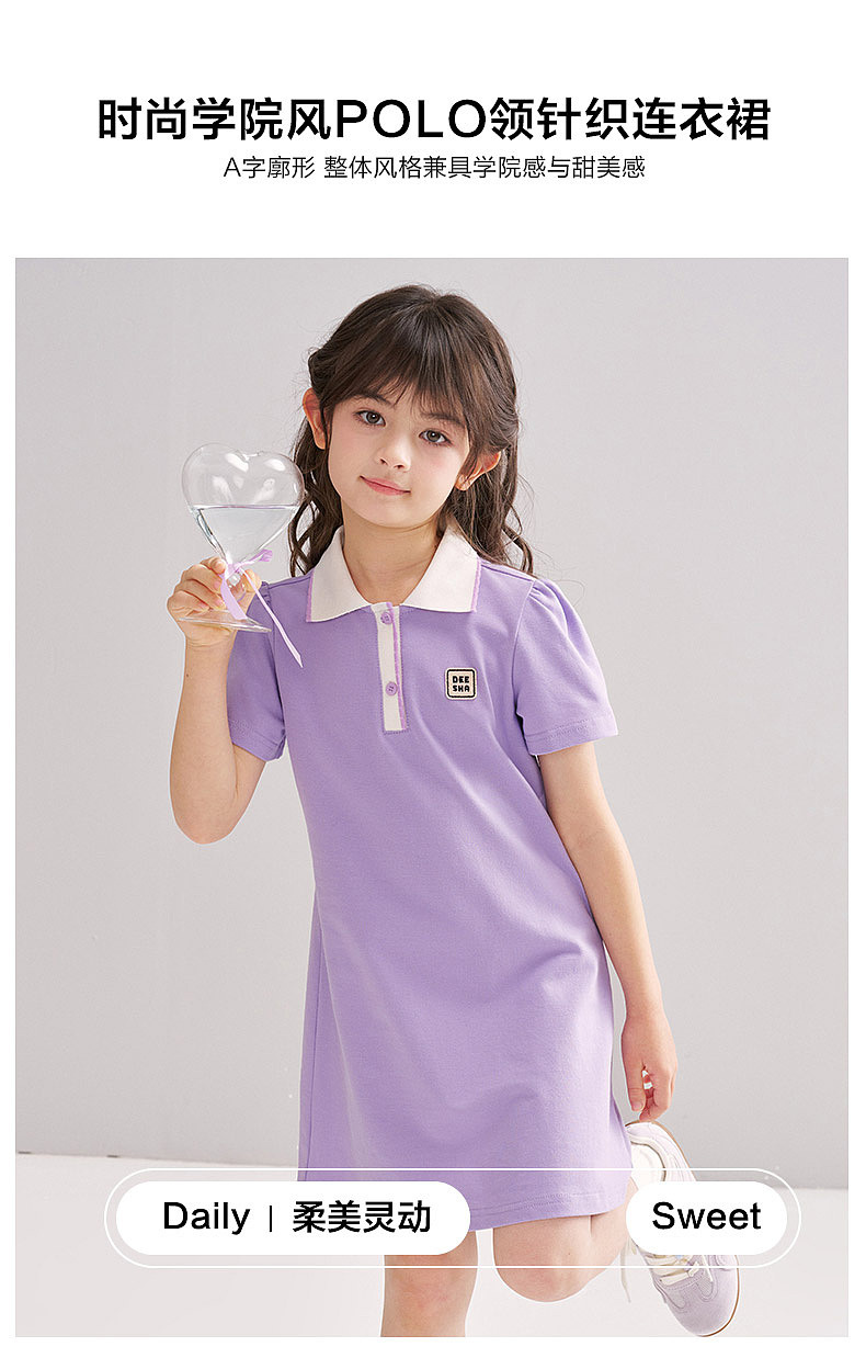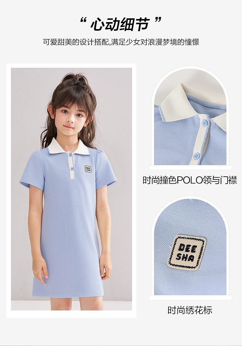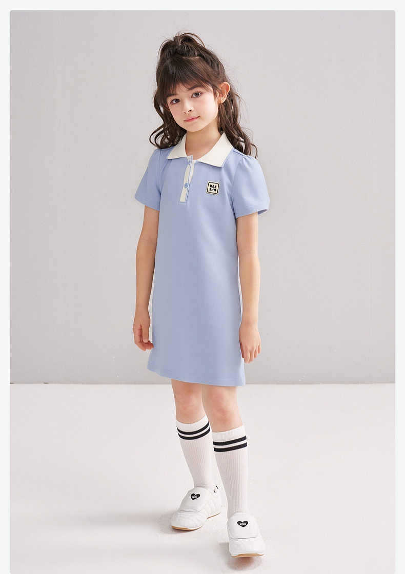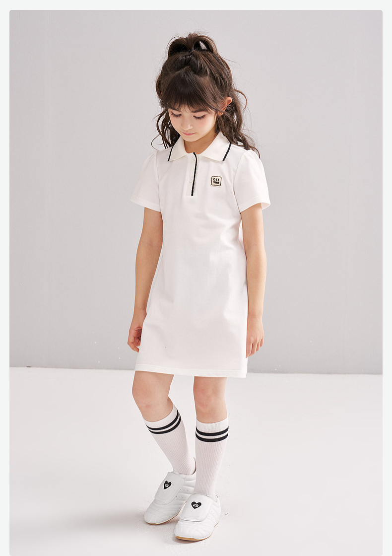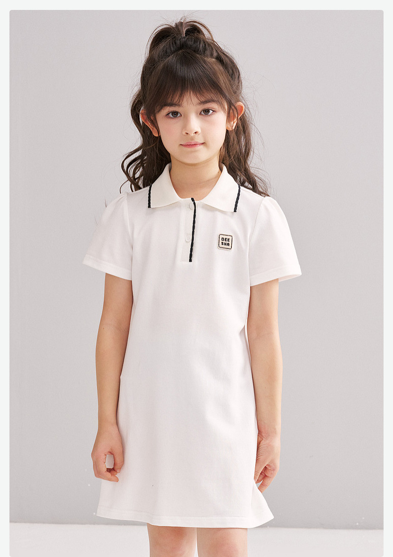 笛莎/Deesha 松饼熊2026年夏季新款童装女童时尚学院风POLO领针织连衣裙
