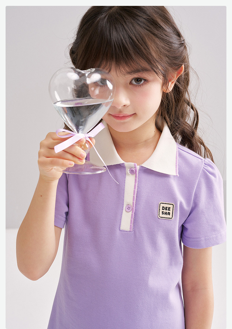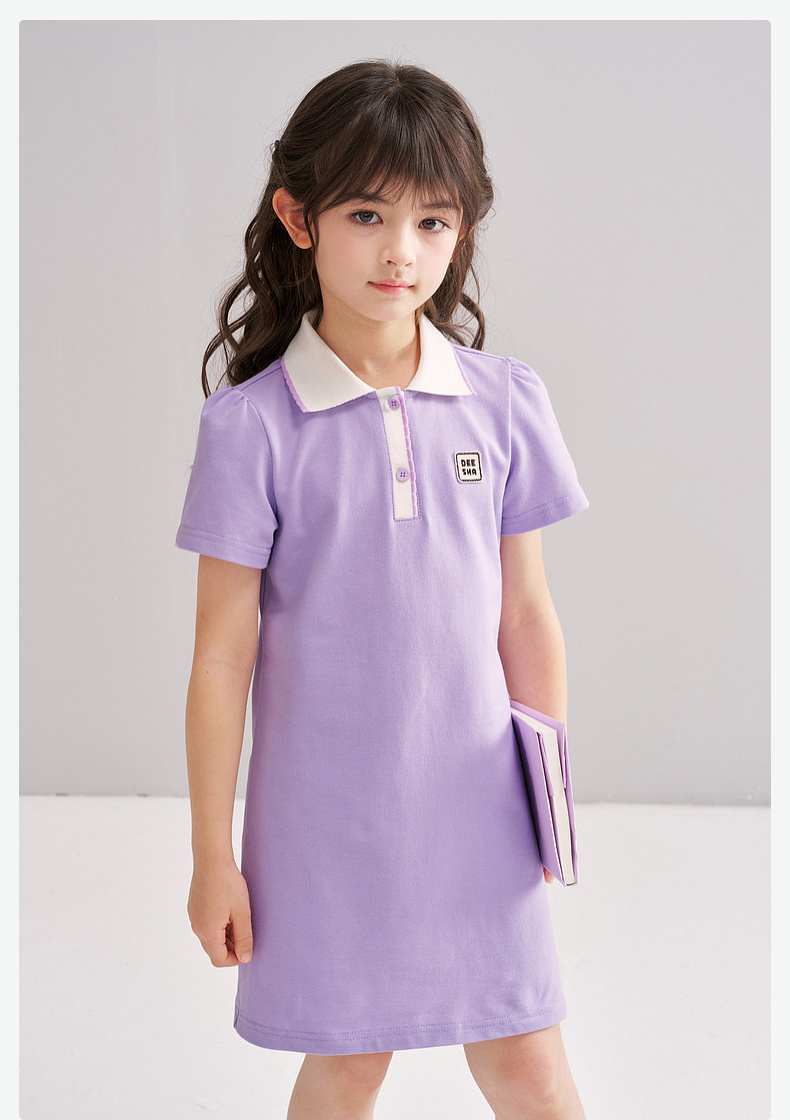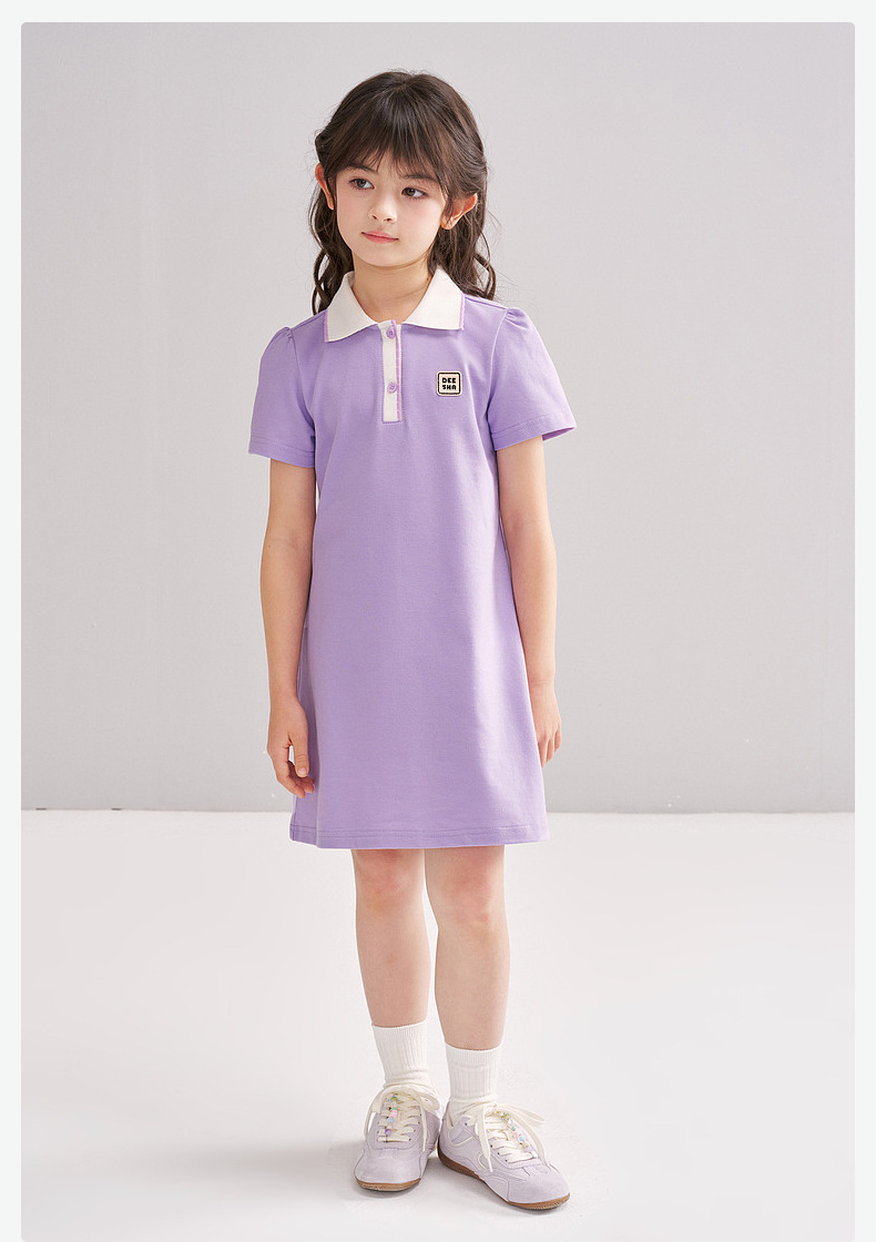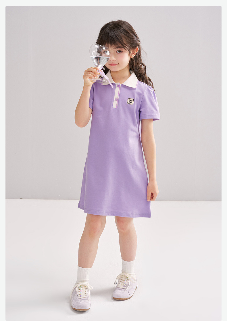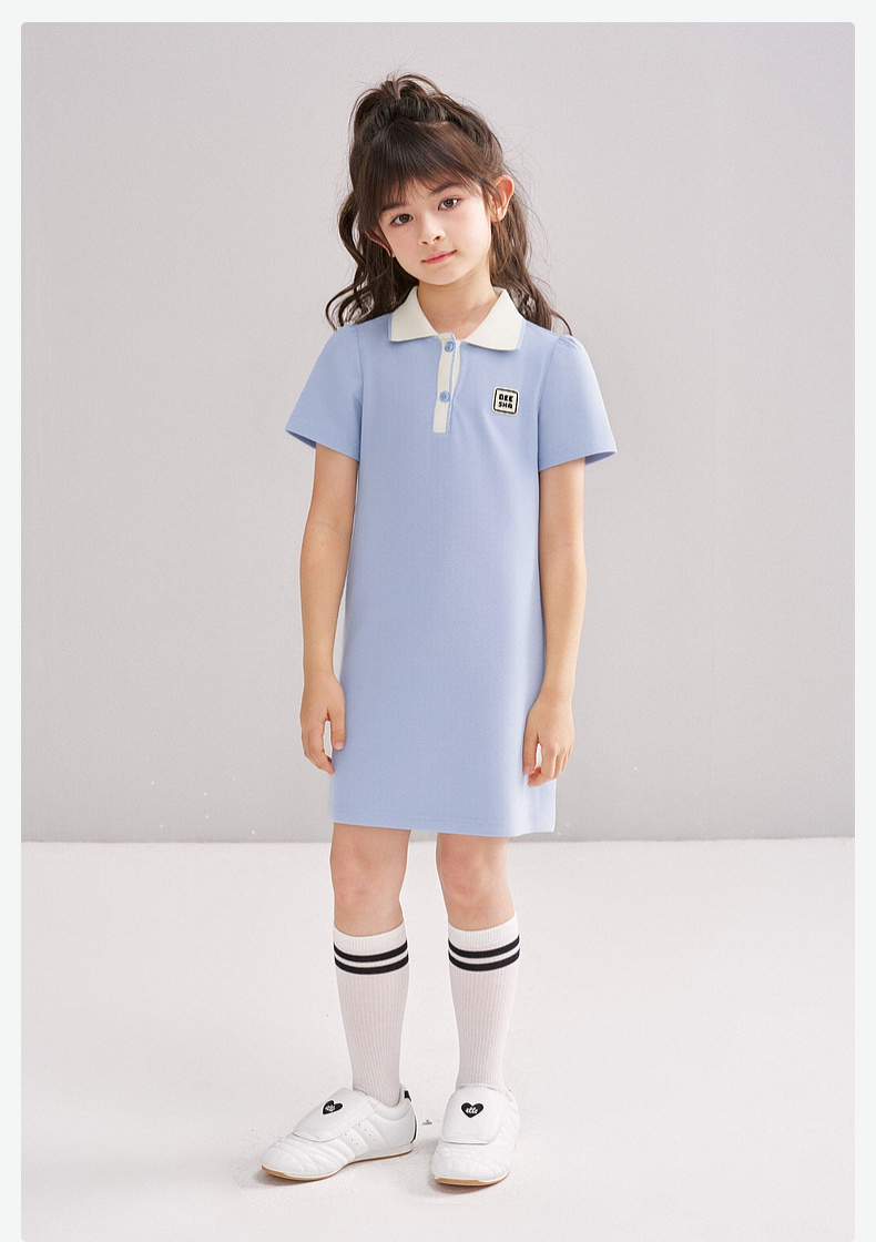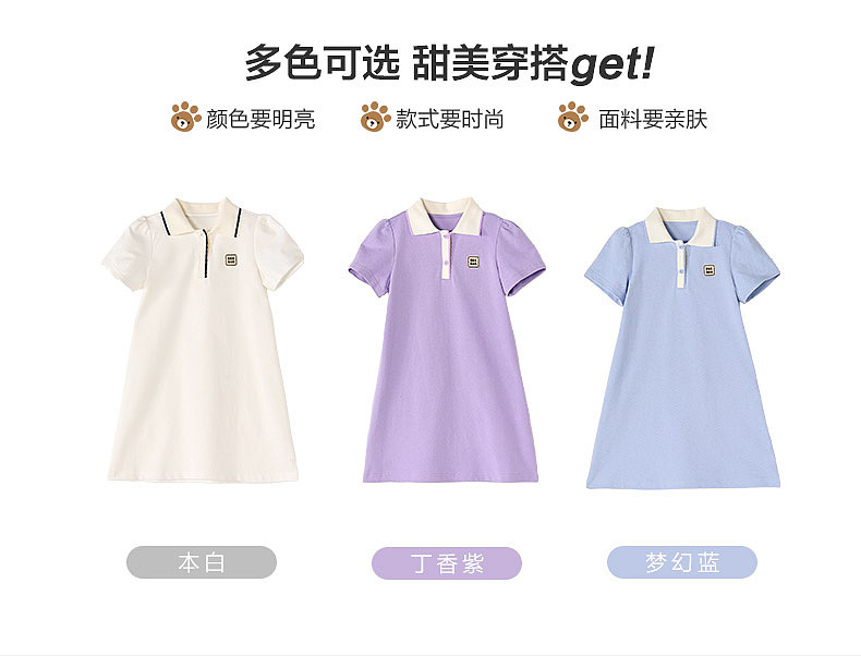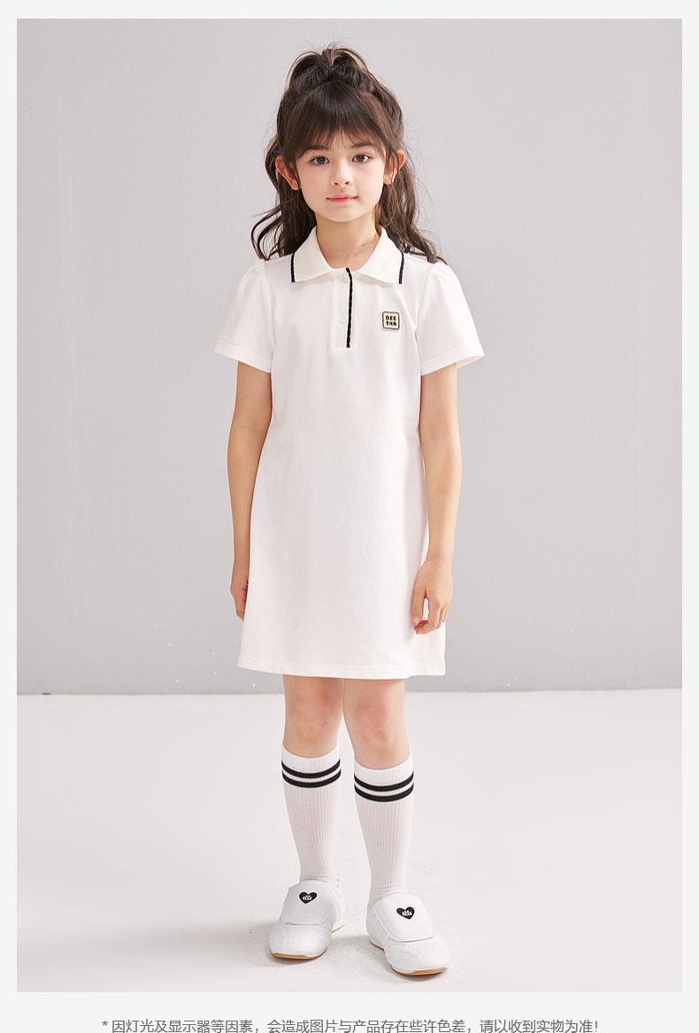 笛莎/Deesha 松饼熊2026年夏季新款童装女童时尚学院风POLO领针织连衣裙