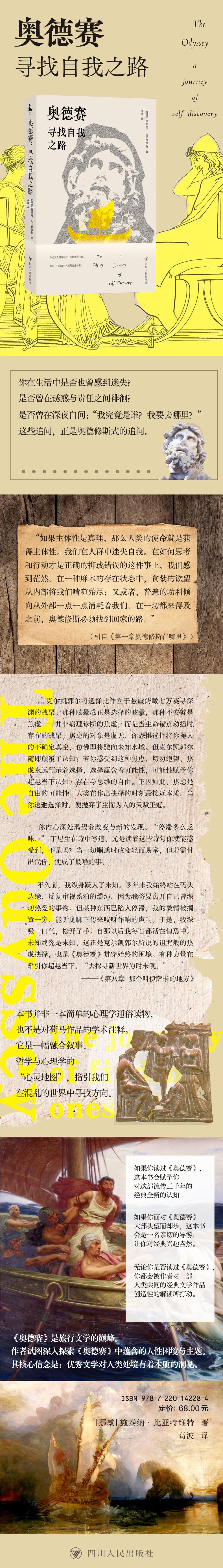 ★ 荷马在《奥德赛》开篇第一句便问道:“告诉我,缪斯,那位足智多谋的人是谁?”这里的“人”,不仅是奥德修斯,更是每一个在人生旅途中寻找意义的普通人。 ★ 挪威心理学家、哲学家施泰纳·比亚特维特以荷马史诗《奥德赛》为叙事框架,融汇了古希腊哲学、现代心理学与存在主义思想,带领我们走进关于“自我”的探索之旅。 ★ 本书汲取了心理学、哲学领域的研究成果以及有关奥德修斯的**研究成果,深入探讨《奥德赛》所涉及的人类困境与核心命题。作者以旅行为写作背景,字里行间洋溢着对生命的热情与对智慧的敬畏,读来既像一场哲学漫谈,又像一次心理疗愈。 ★ 一本内置精美彩插的文学+哲学+心理学跨学科的图书,作者以富有创意的见解和优美的文笔,将西方文学经典的《奥德赛》,化为一剂帮助现代人寻找自我,建立主体性,走出迷茫困境的现代人的“药方”。