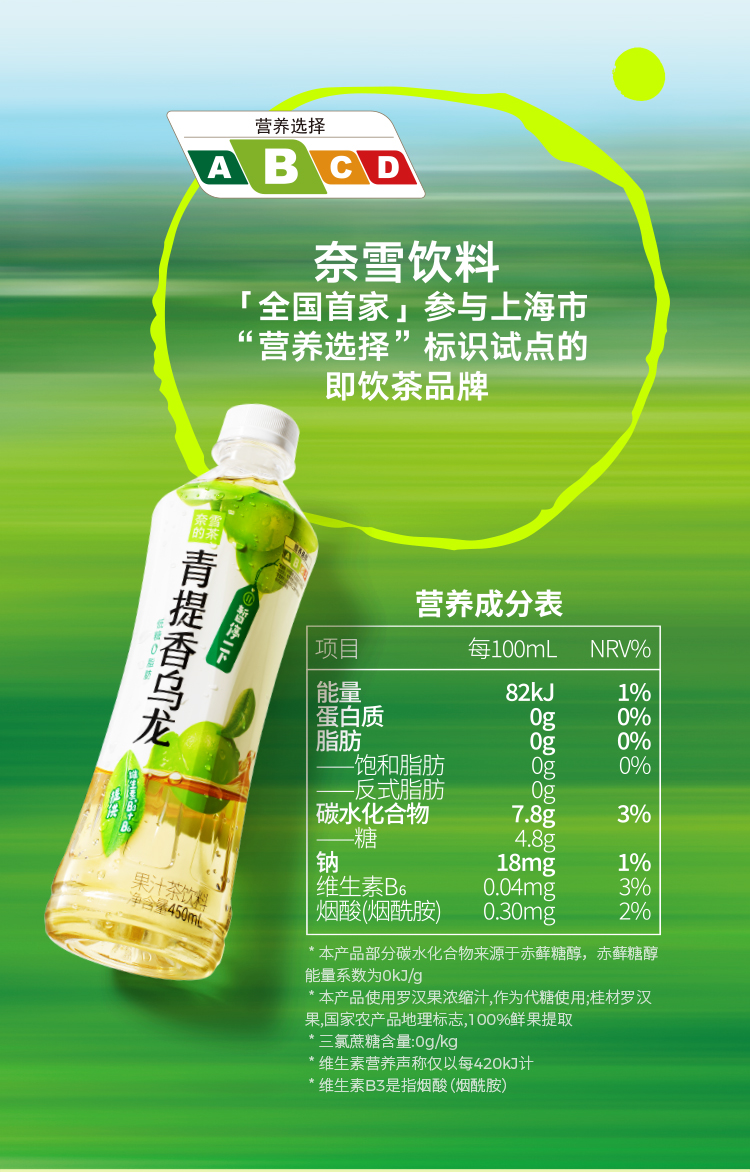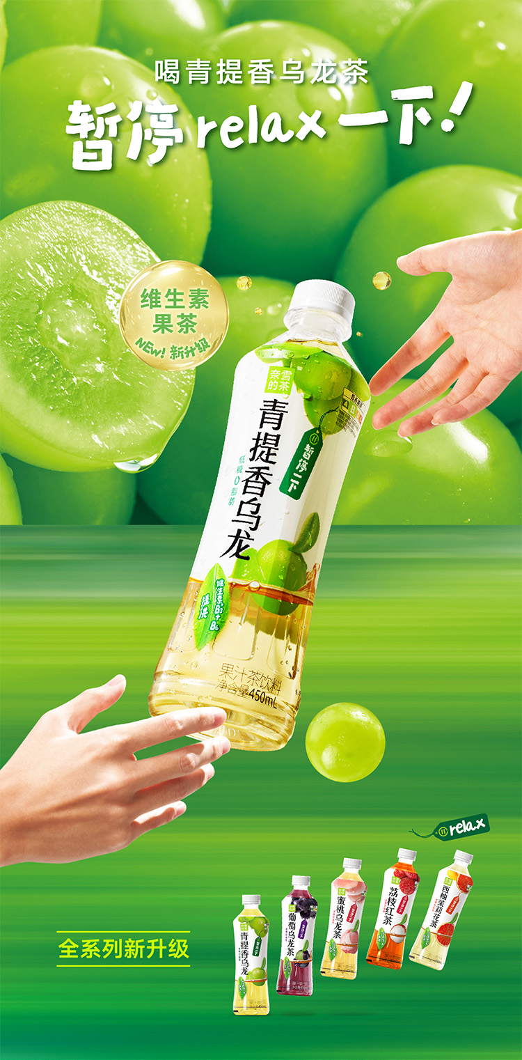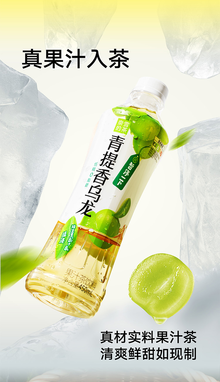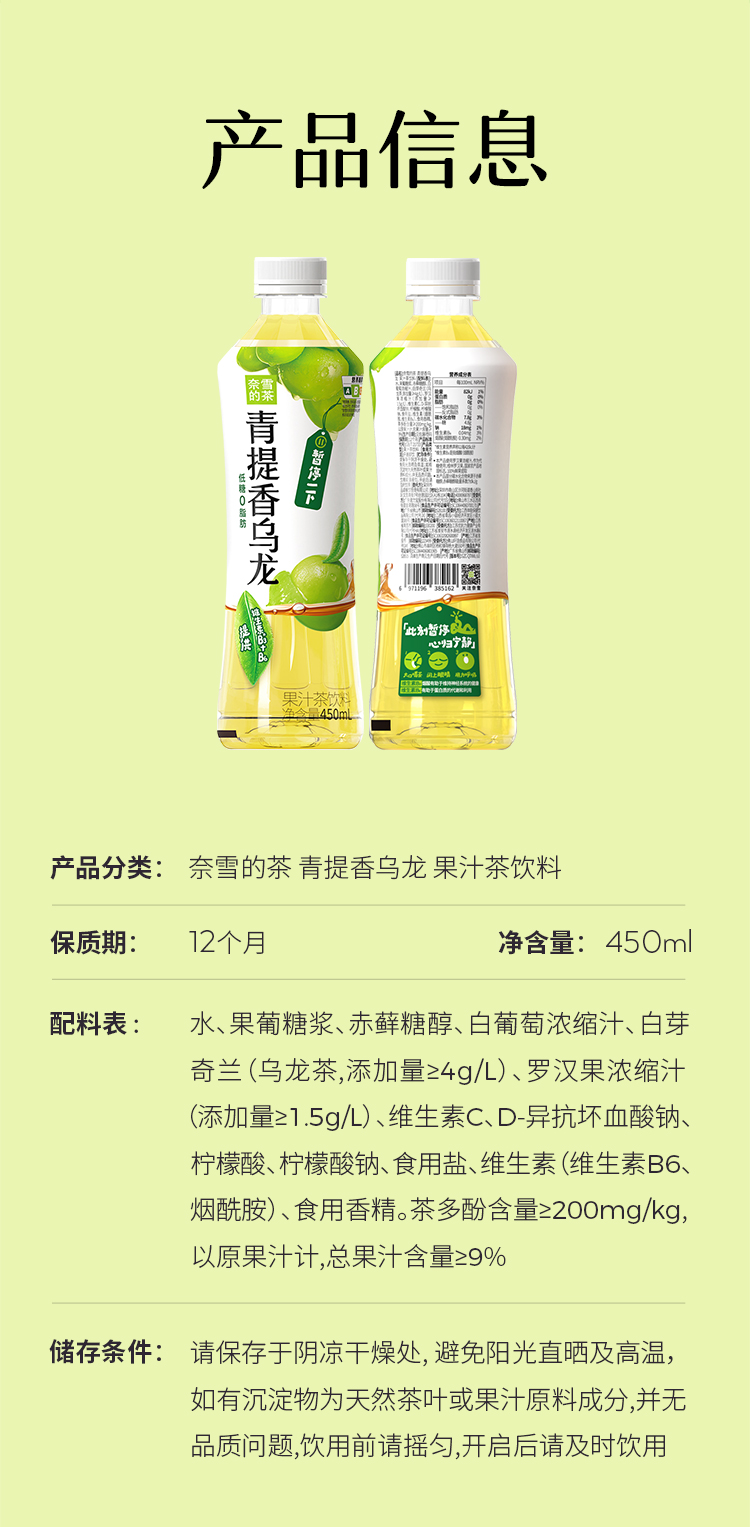 奈雪的茶 青提香乌龙茶 低糖果汁饮料450ml*15瓶箱装
