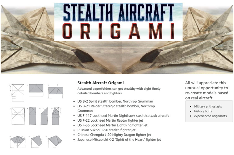Advanced paperfolders can get stealthy with eight finely detailed bombers and fighters. Based on actual American, Russian, Chinese, and Japanese stealth aircraft, the full-color and camouflaged models include:
