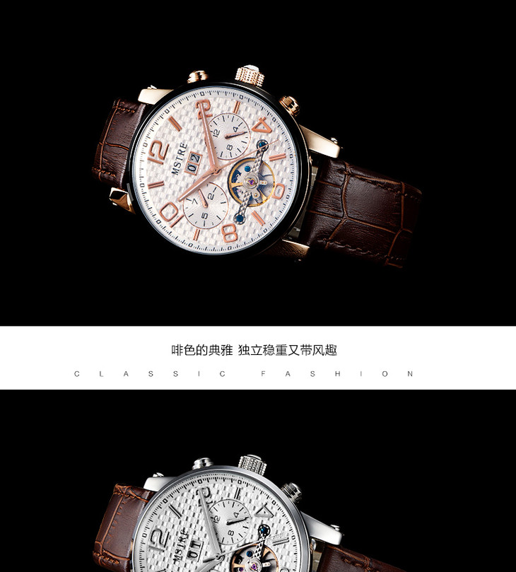 名仕爵(MSTRE)男士手表男表镂空时尚防水全自动机械表9128G