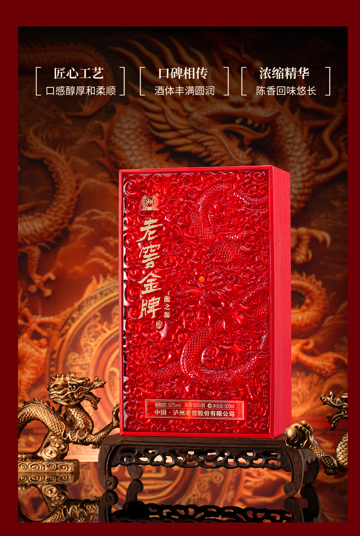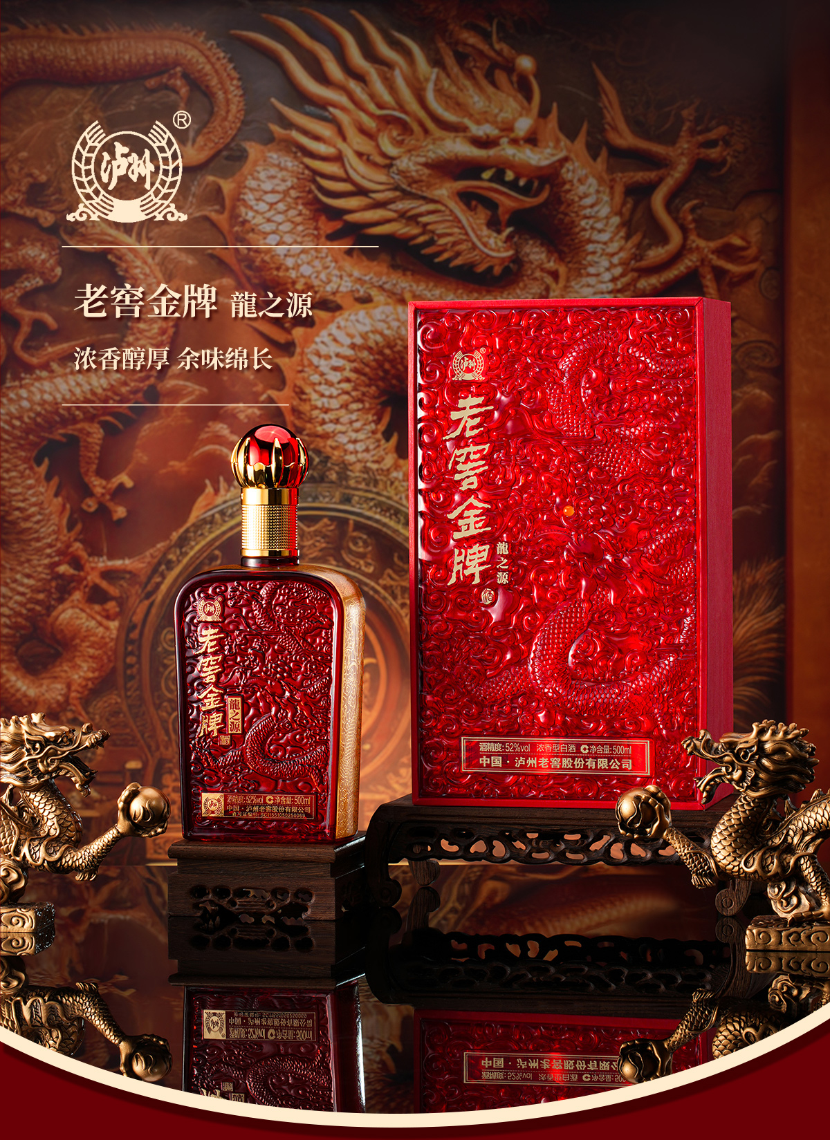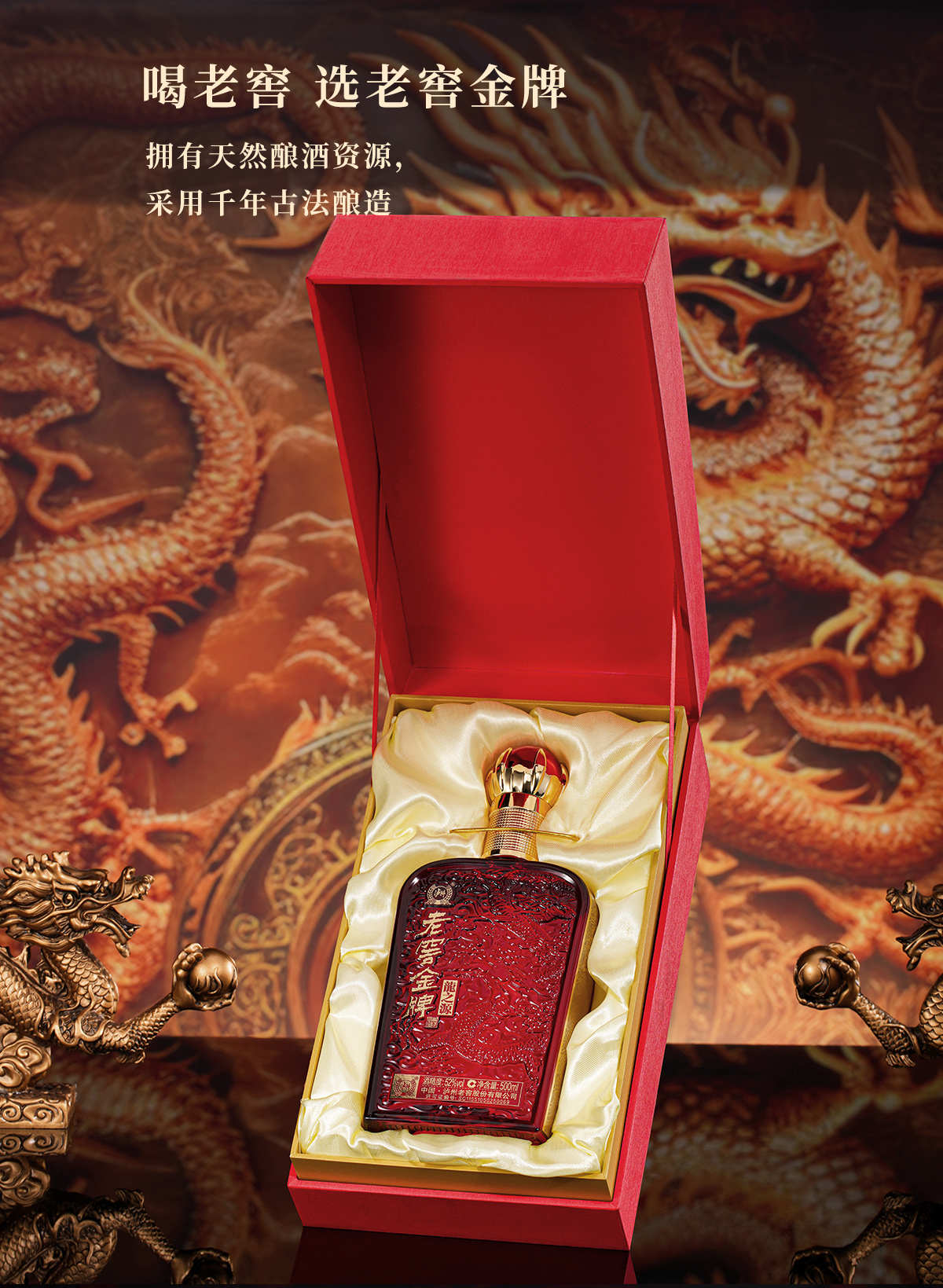 热卖中!!京东/顺丰发货!【中国 • 泸州老窖股份出品】泸州老窖 金 牌• 龙之源 徐悲鸿大师作品 中国红礼盒 52°浓香型白酒