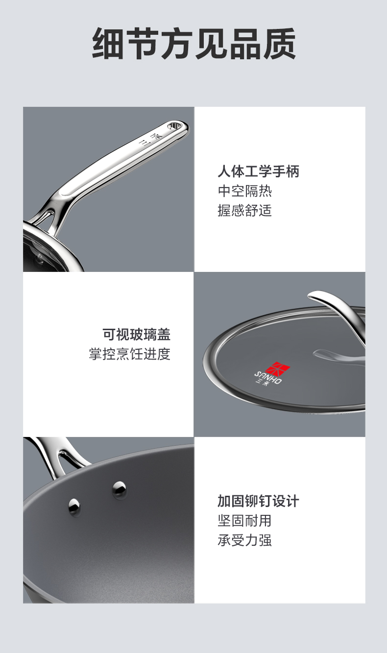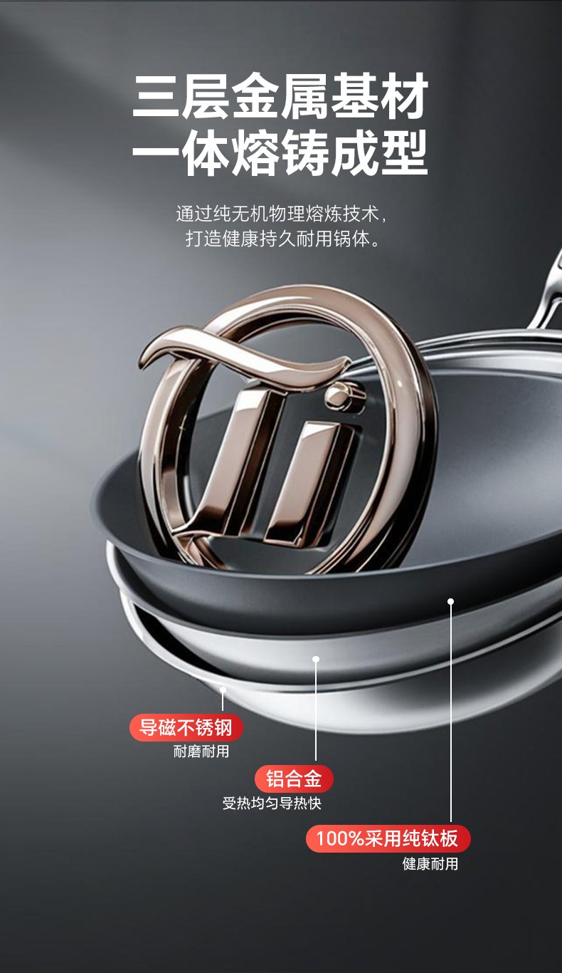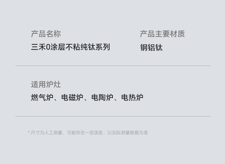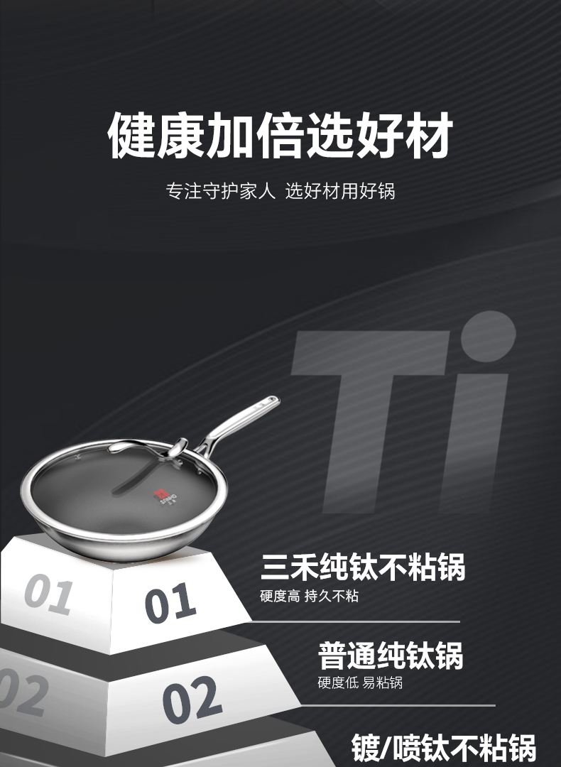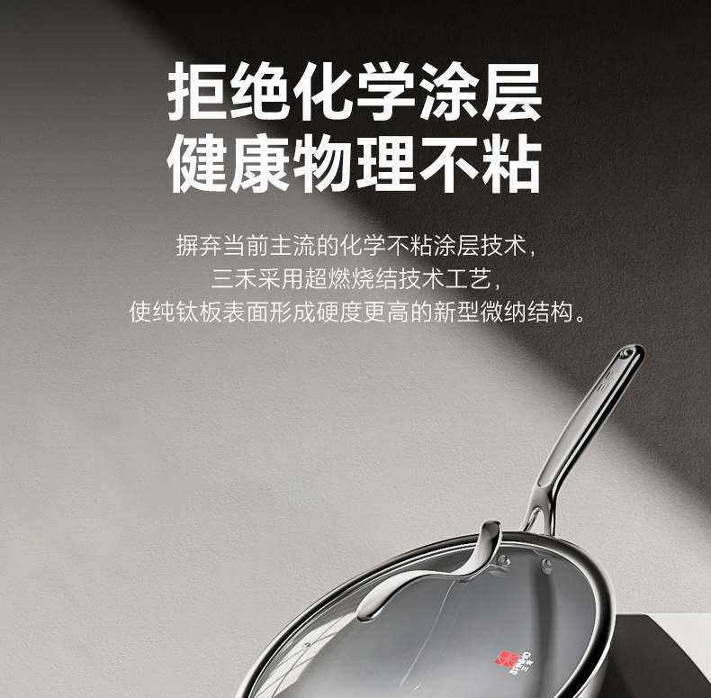 三禾0涂层纯钛锅家用无涂层不粘锅电磁炉燃气灶通用