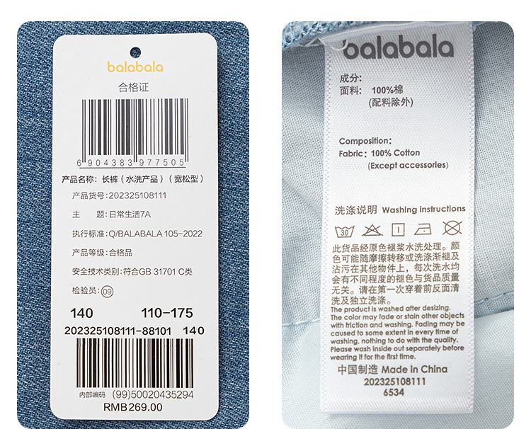【商场同款】巴拉巴拉童装儿童裤子男童长裤2025秋新款牛仔直筒裤