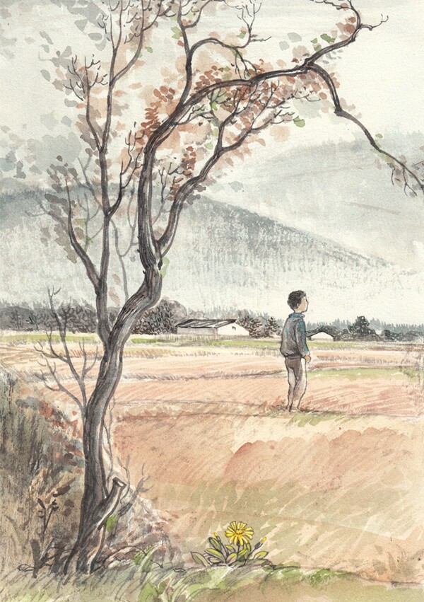 这下,小铁匠也傻了,挠了几下脑袋,“我去给你问问……”然后一口气跑下山坡。不一会小铁匠跑出来了,“他打铁呢,叮当叮当的,没听见我问话。我也得去帮……”说完就把头缩回去了。我追到外面喊道:“下午别忘记上学——”