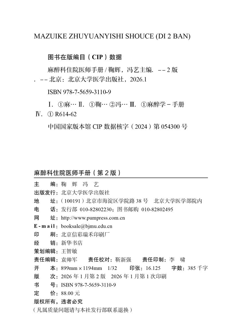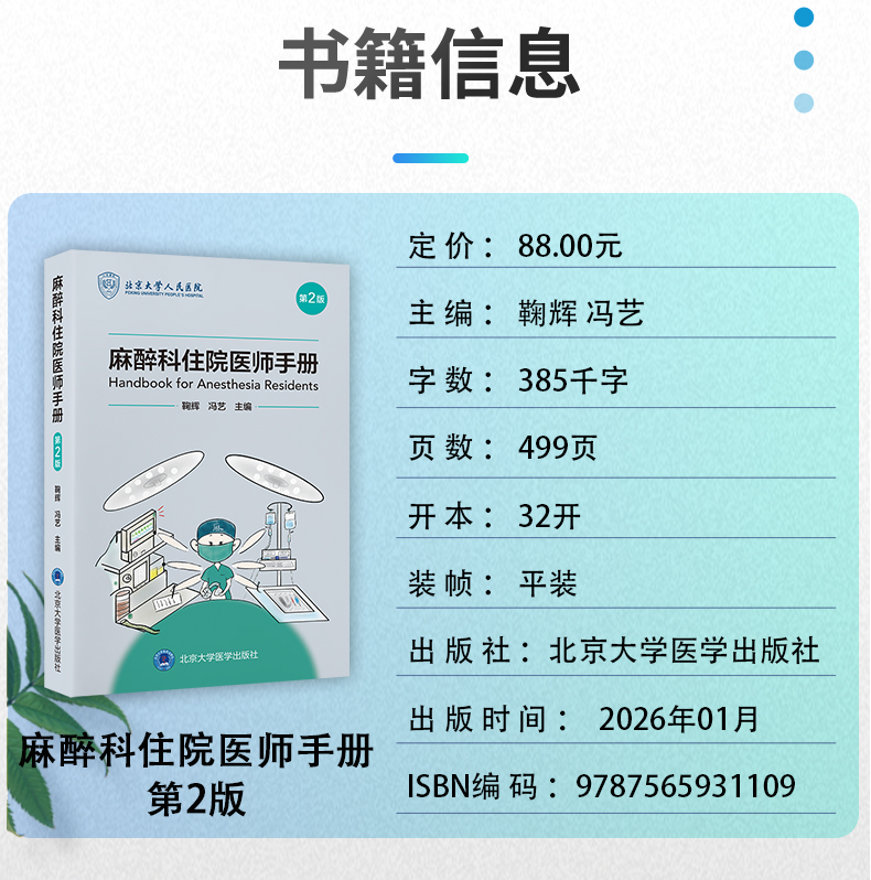 书名:麻醉科住院医师手册(第2版)