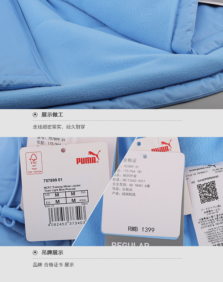 PUMA/彪马 曼城20/21赛季冬训保暖棉服夹克75789901