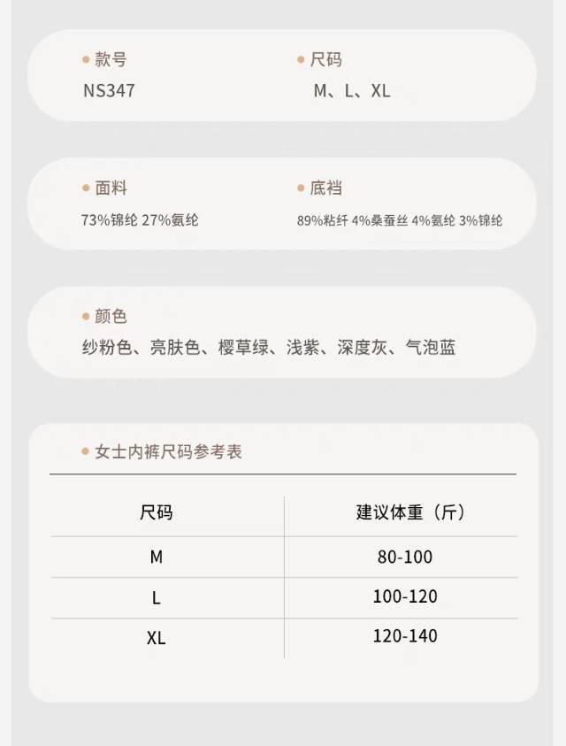 而且每一条都是独立包装 包装精美,送人也很合适 这款「Lee 7A女士冰丝无感内裤」 80斤到140斤的女生都可以驾驭 尺码从M-XL,穿着一点都不勒!