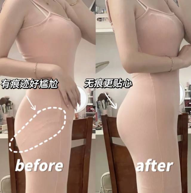 一体成衣 不用担心皮肤和肉肉因为它的塑型而勒出尴尬线 更不担心它会开线 多贴肤的裙子都看不出“内裤印”!